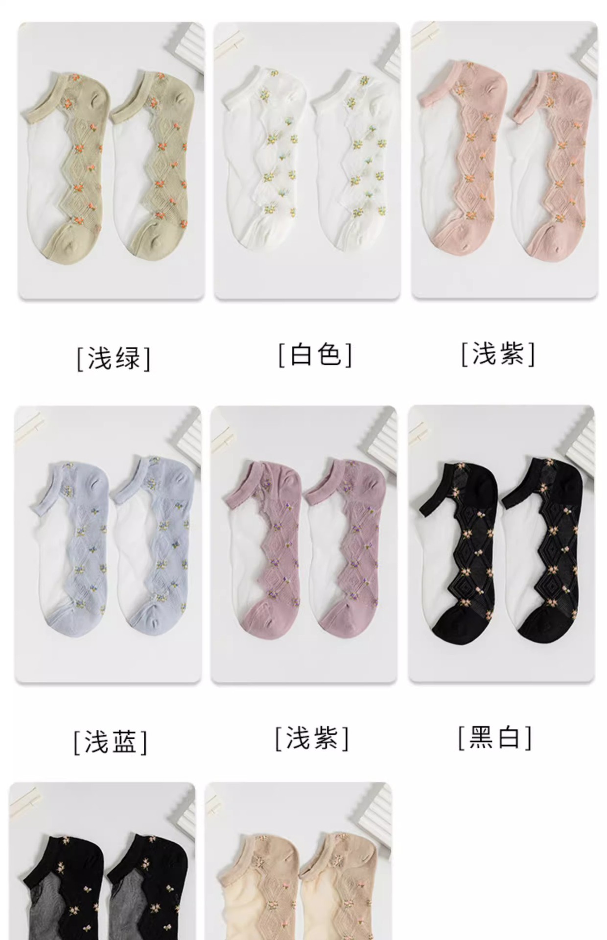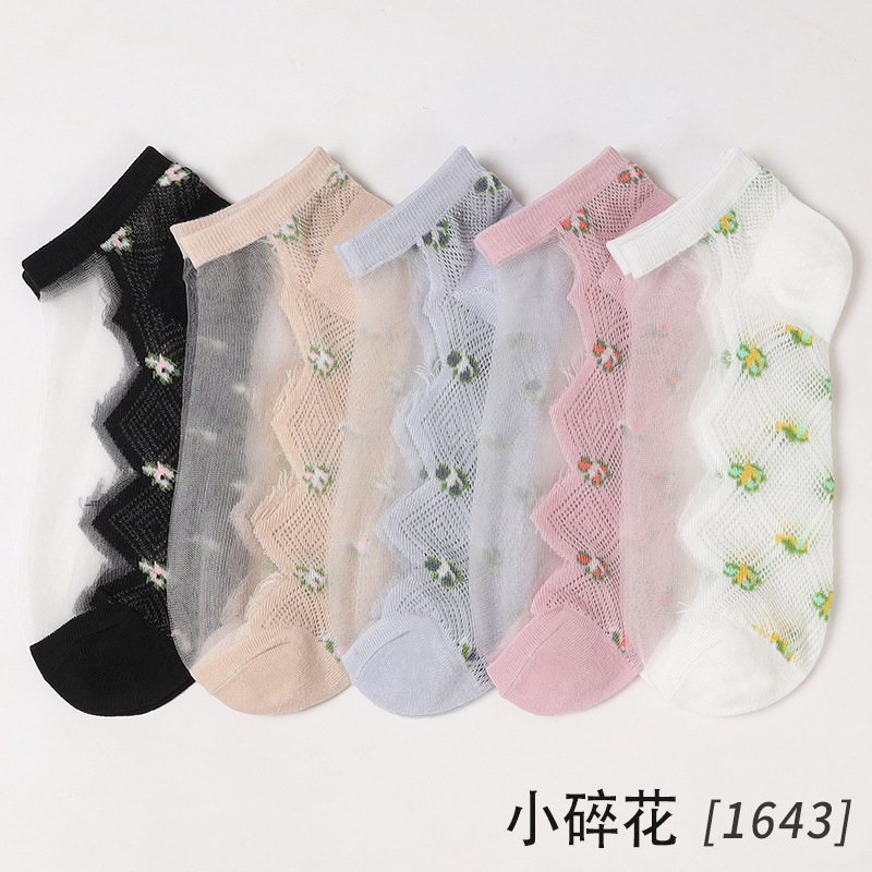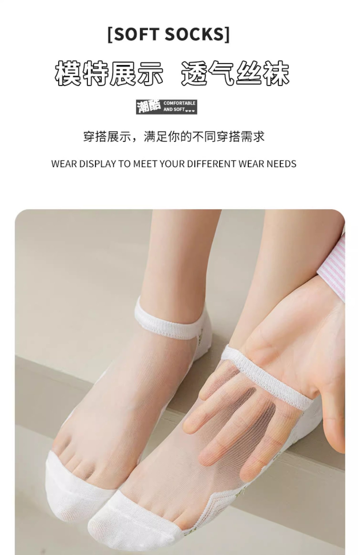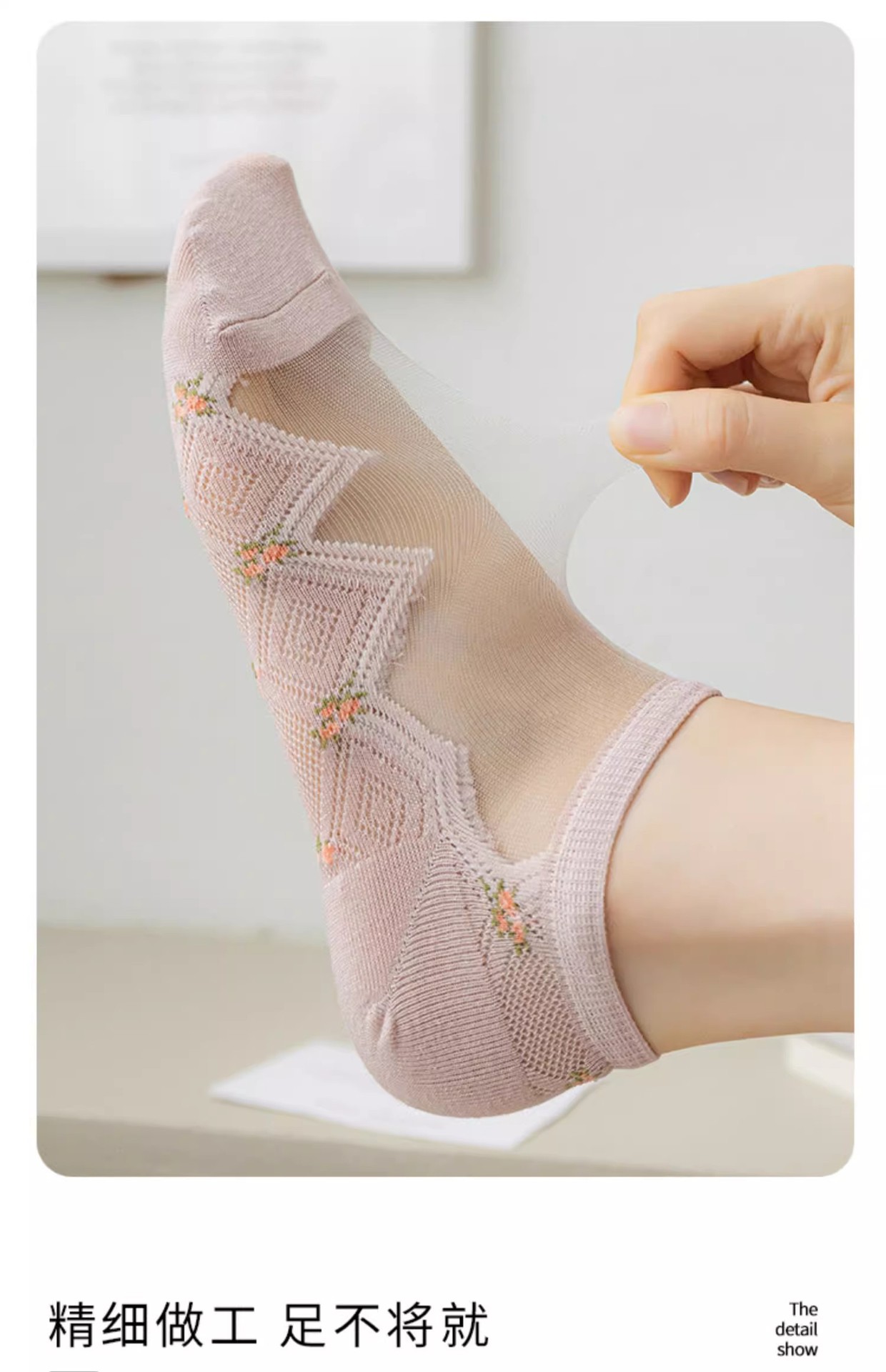 유리 실크 크리스탈 양말 여성의 여름 얇은 코튼 바닥 Tulle 짧은 양말 인터넷 인기있는 Instagram 인기있는 여름 얕은 컷 보트 양말스토어 가기