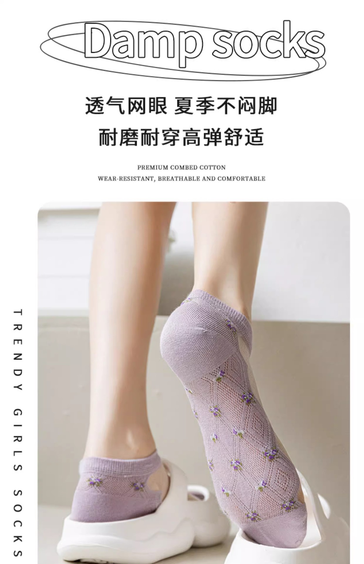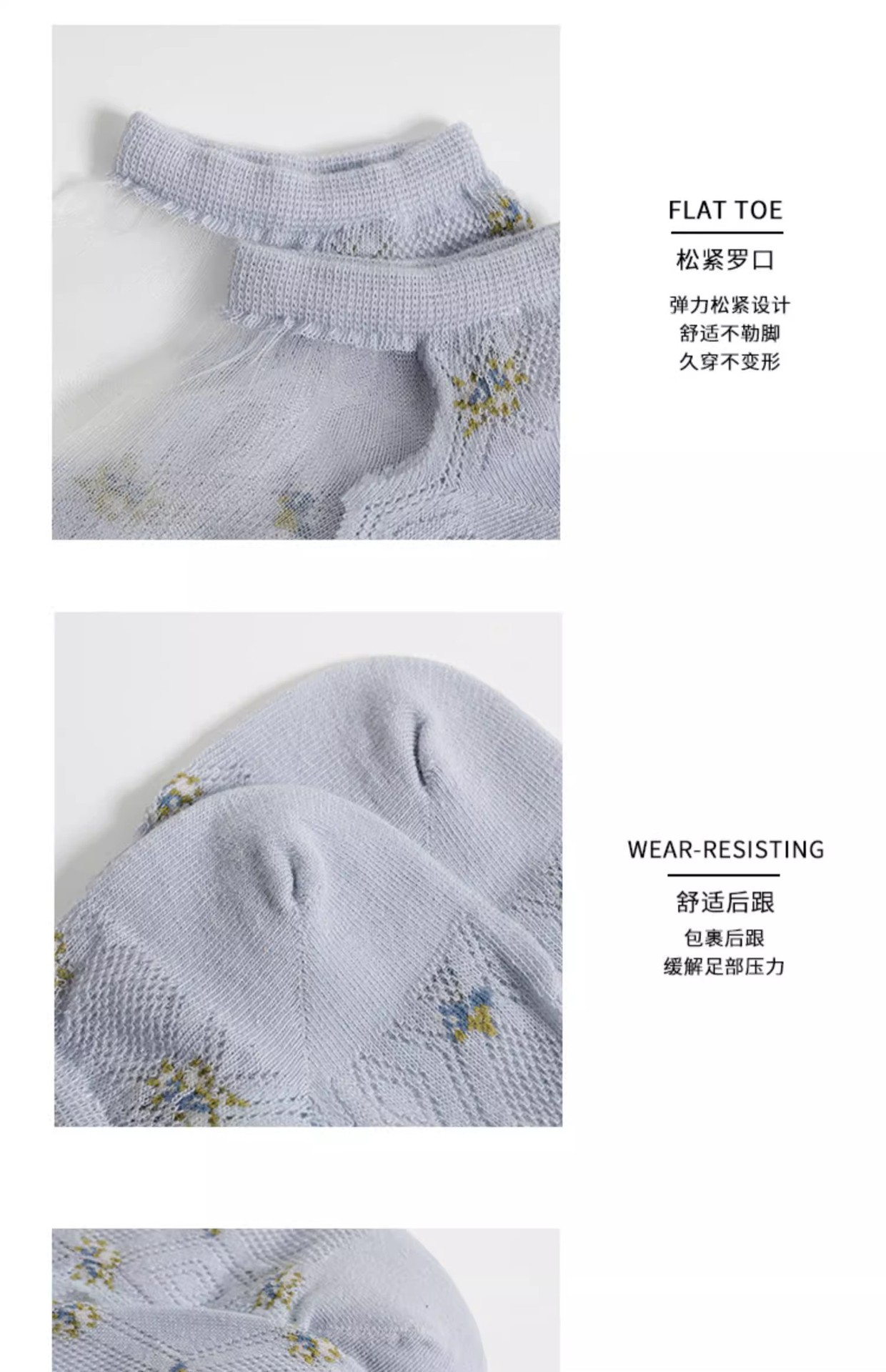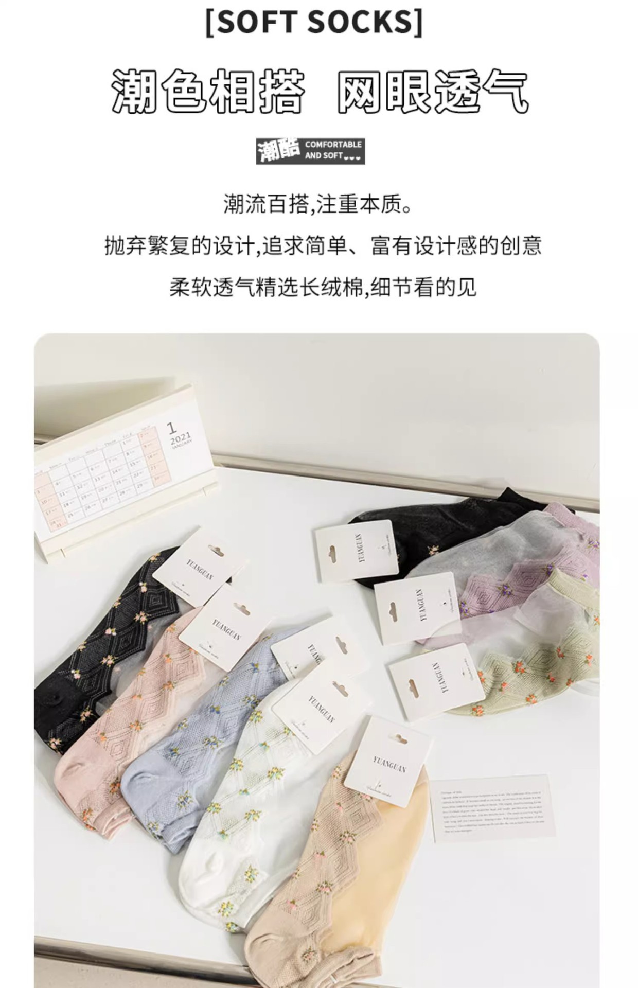 유리 실크 크리스탈 양말 여성의 여름 얇은 코튼 바닥 Tulle 짧은 양말 인터넷 인기있는 Instagram 인기있는 여름 얕은 컷 보트 양말스토어 가기