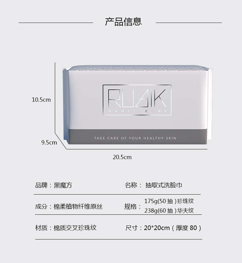 블랙 루빅스 큐브 코튼 소프트 모던 미니멀리스트 시리즈 워시 타월 드로우 다운 타월 일회용 클렌징 타월 두꺼운 진주 패턴 EF스토어 가기
