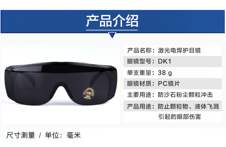 전문 레이저 용접 고글 충격 방지 빛 높은 저항 부식 방지 액체 스플래시 방지 DK1