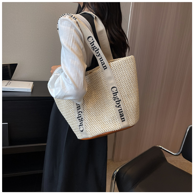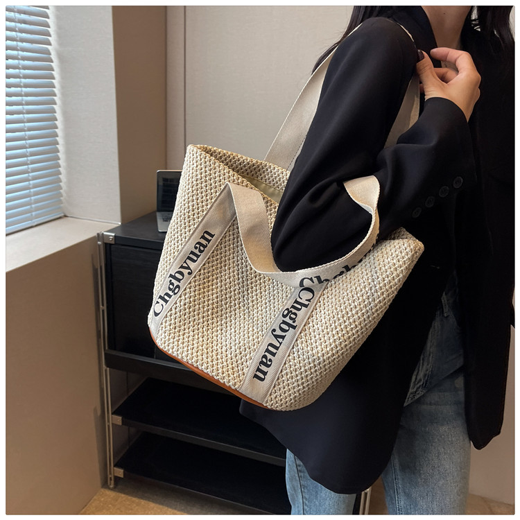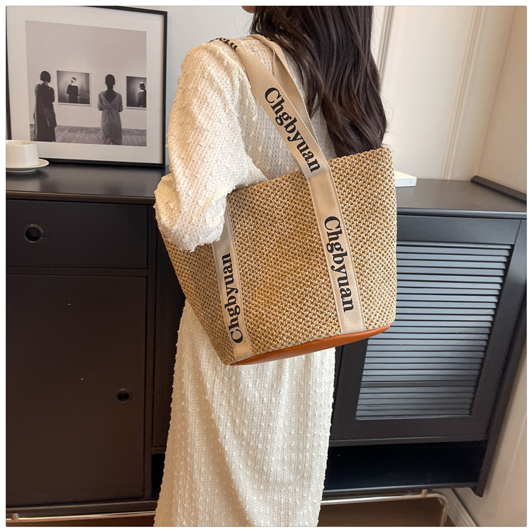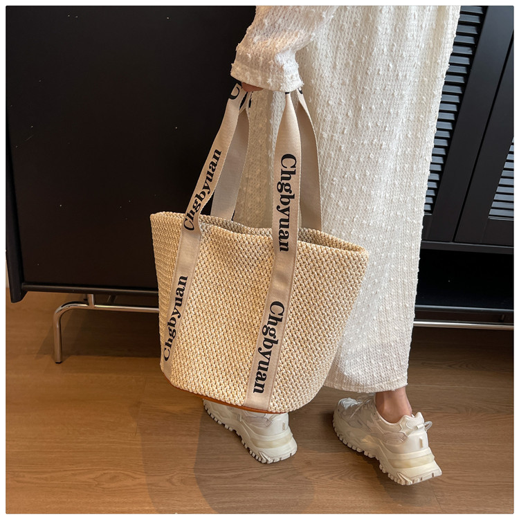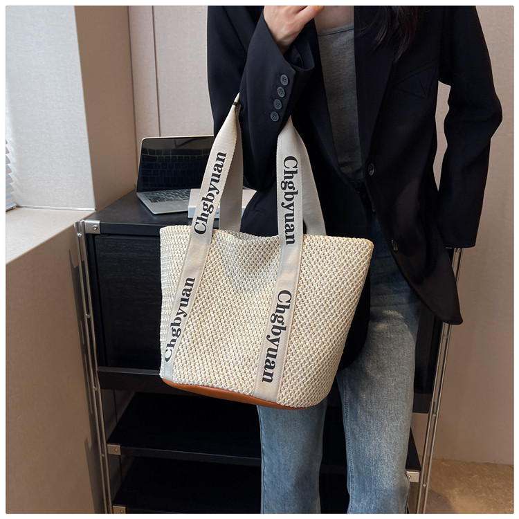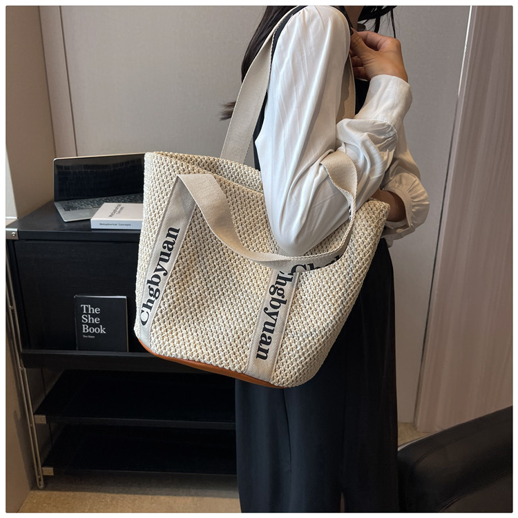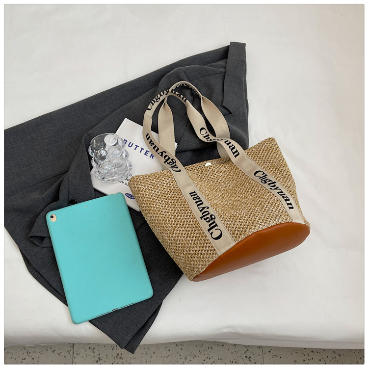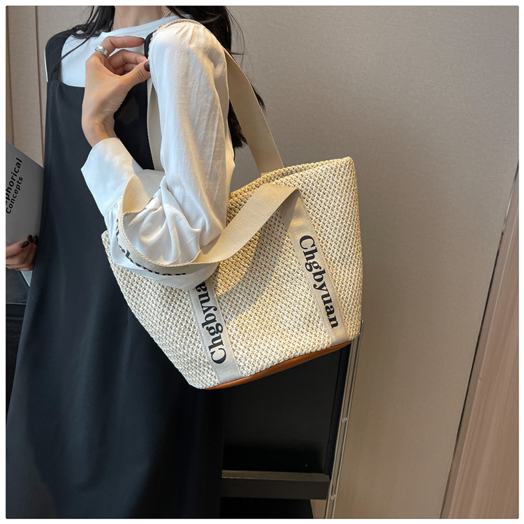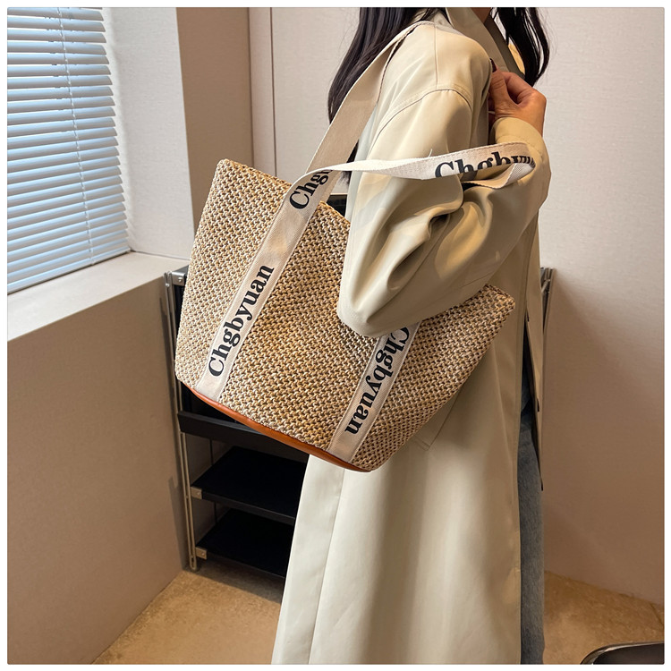 짠 가방 스타일 밀짚 짠 가방 비치 백 맞춤형 도매 2024 새로운 손 바구니 가방 어깨 가방 여름스토어 가기