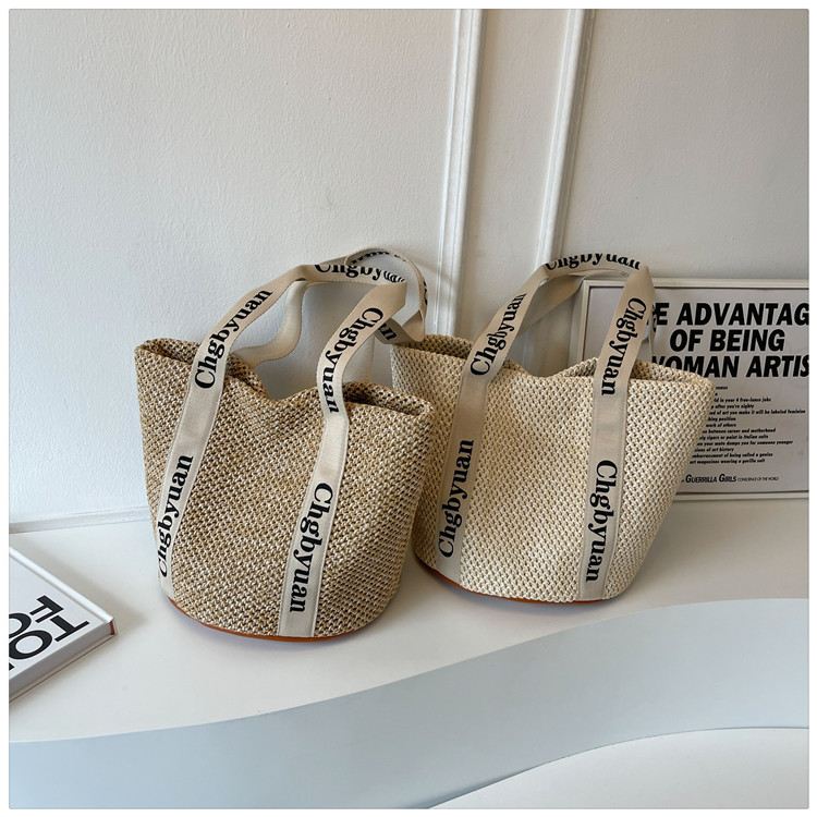 짠 가방 스타일 밀짚 짠 가방 비치 백 맞춤형 도매 2024 새로운 손 바구니 가방 어깨 가방 여름