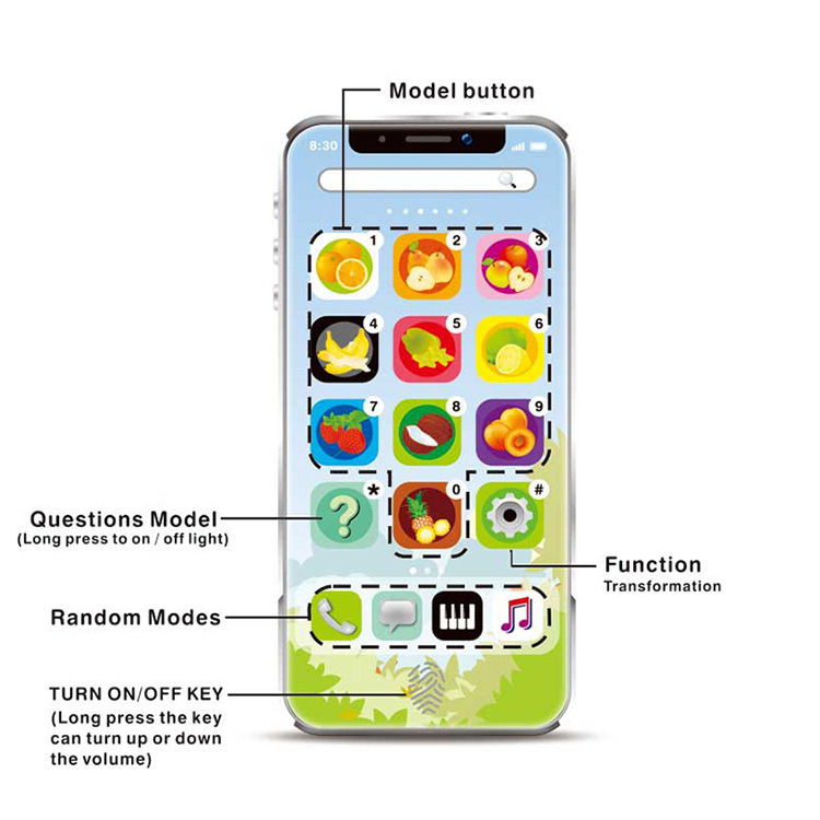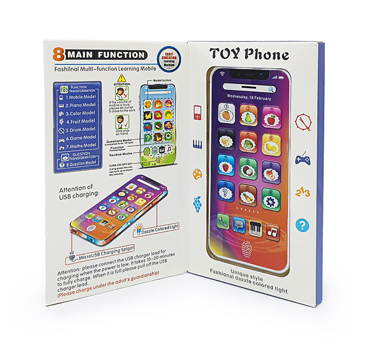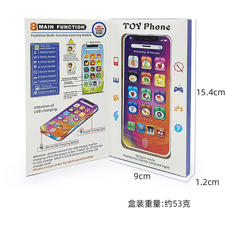 국경 간 영어 어린이 충전식 휴대 전화 장난감 조기 교육 퍼즐 지능형 시뮬레이션 전화 폭발 영어 학습 기계스토어 가기
