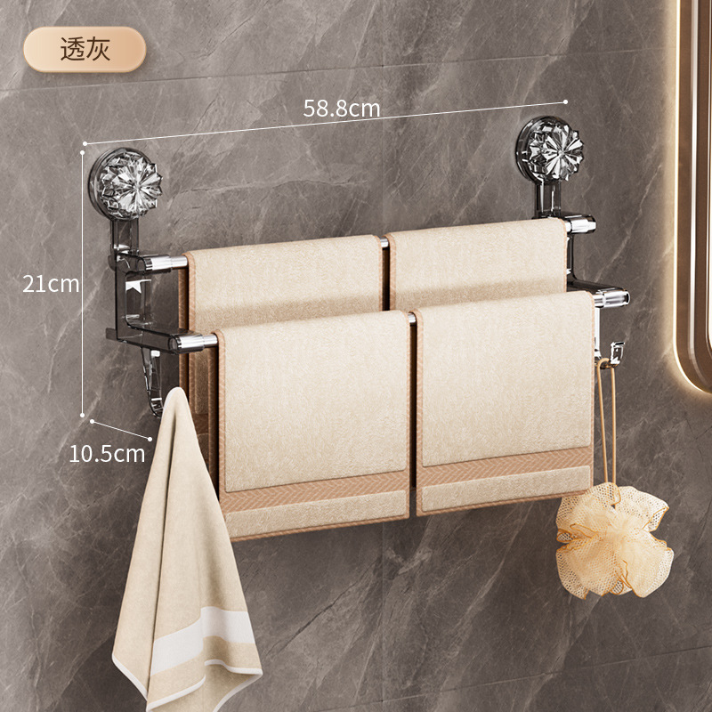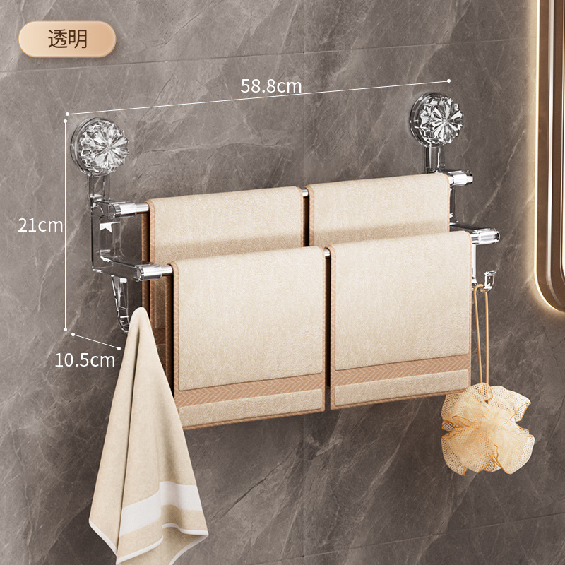 가벼운 럭셔리 흡입 컵 타월 랙 욕실 보관 랙 후크 건조 및 젖은 수건 보관 랙이있는 가정용 타월 저장로드