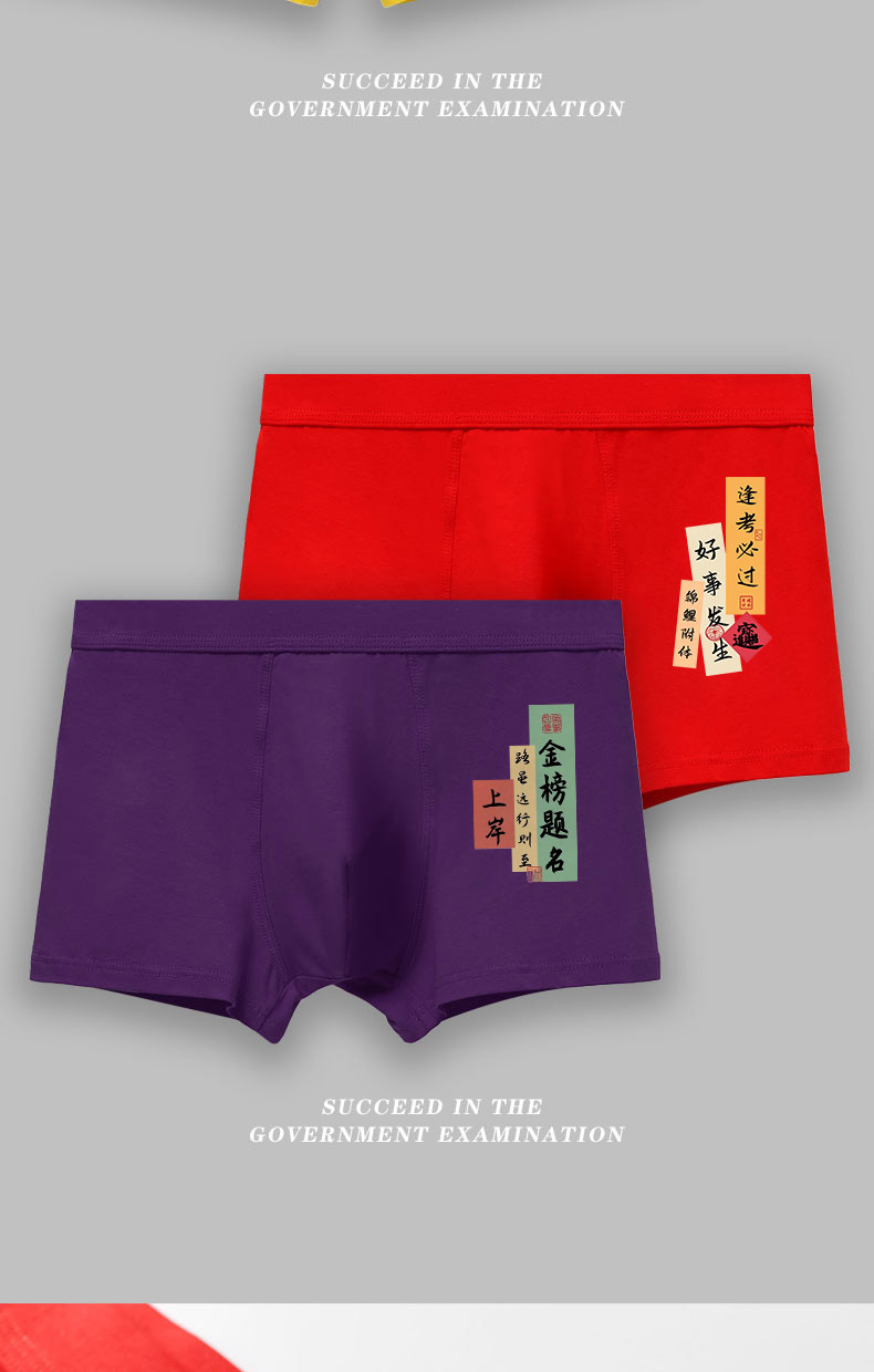 남성 대학 입학 시험을위한 보라색 속옷 특별 반바지스토어 가기
