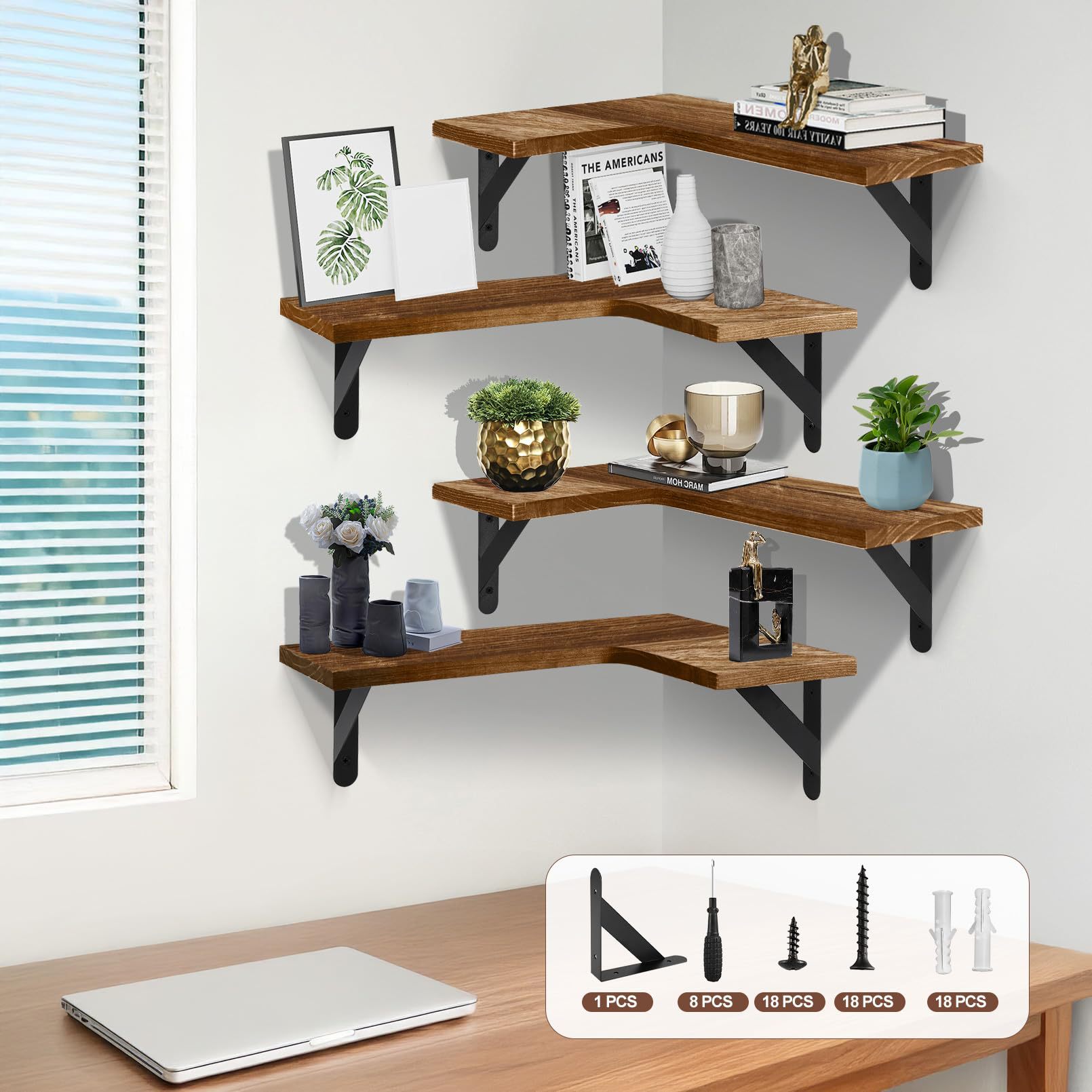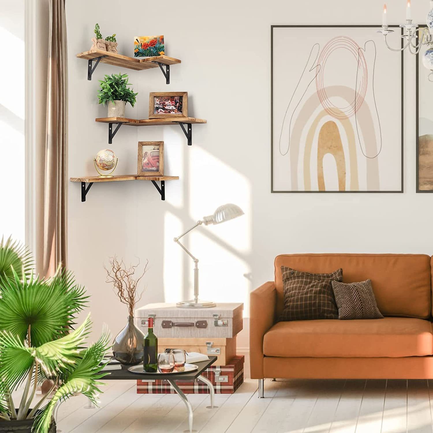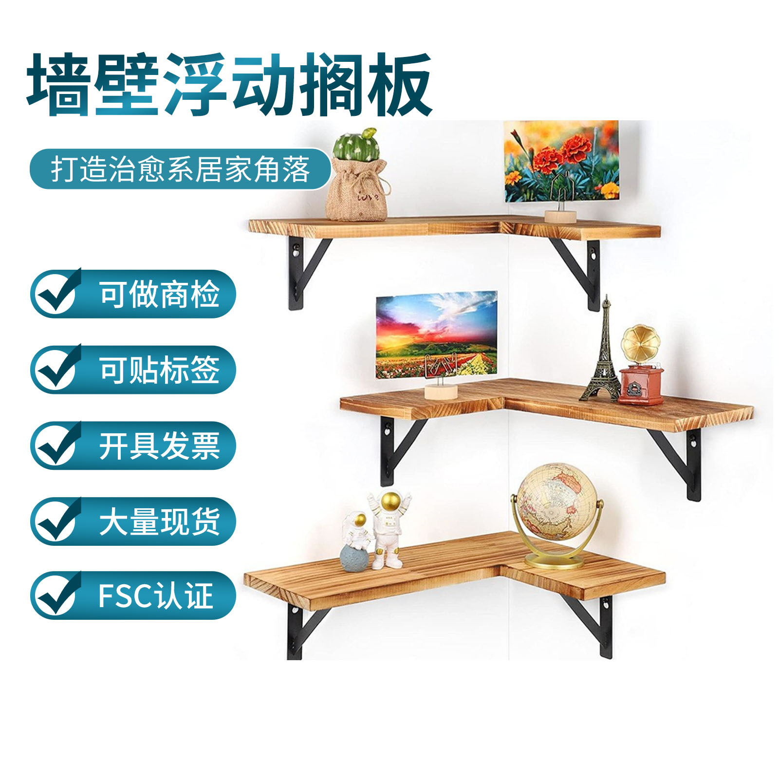 침실과 거실을 위한 국경을 넘는 원목 벽걸이 수납 선반, 다층 선반, 삼각형 수납 선반, 벽걸이형