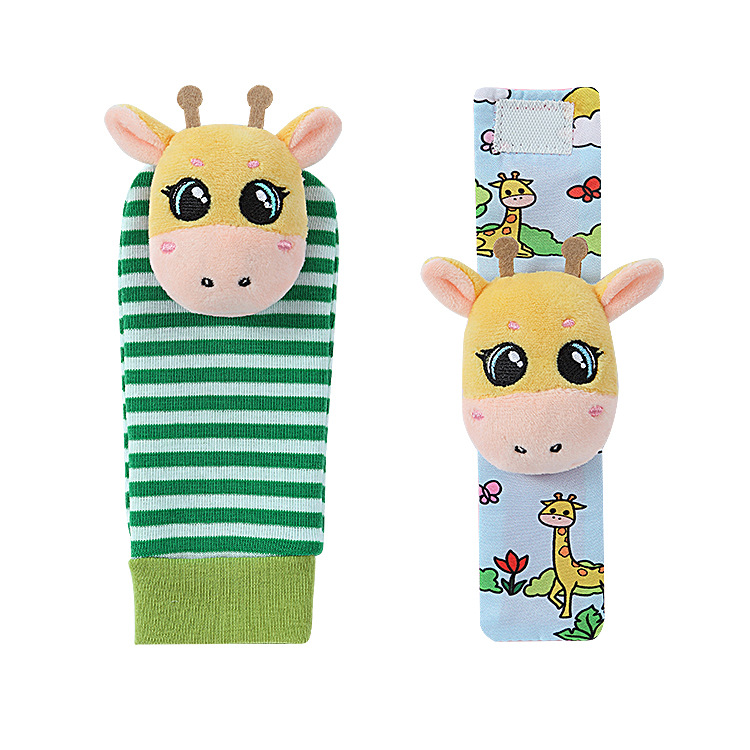 신생아 아기 만화 동물 딸랑이 손목 스트랩 양말 아기 교육 진정 장난감 0-1 년 된 국경 도매스토어 가기