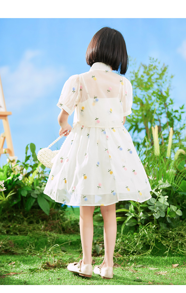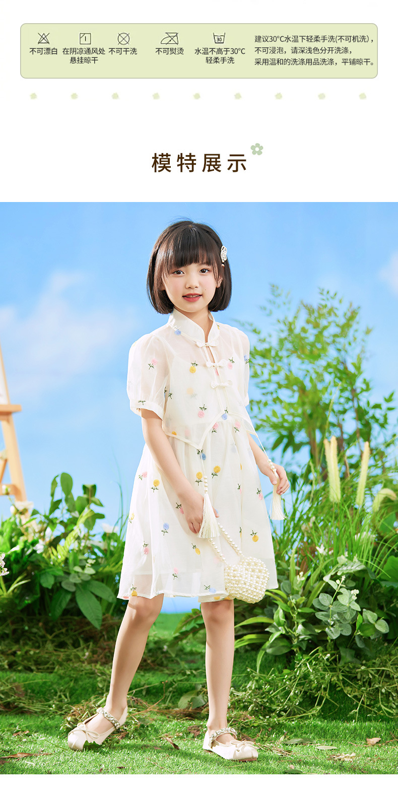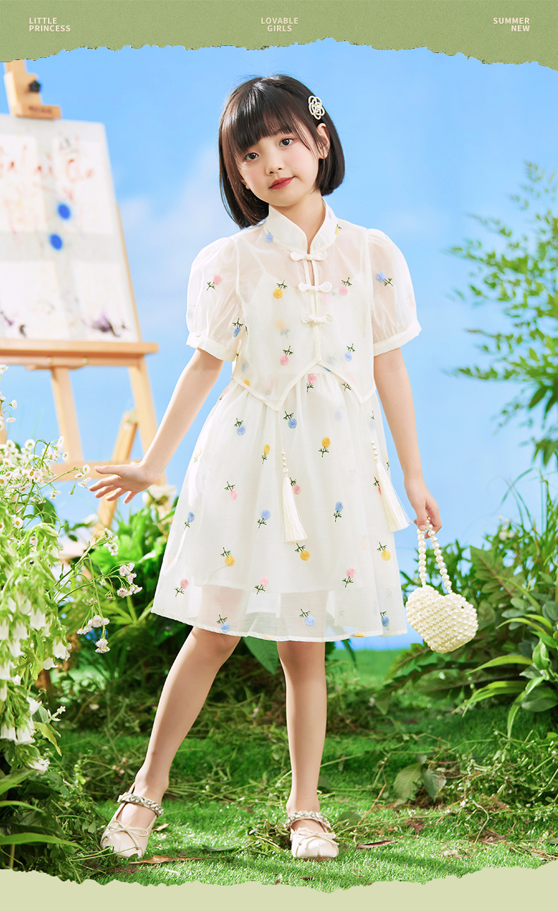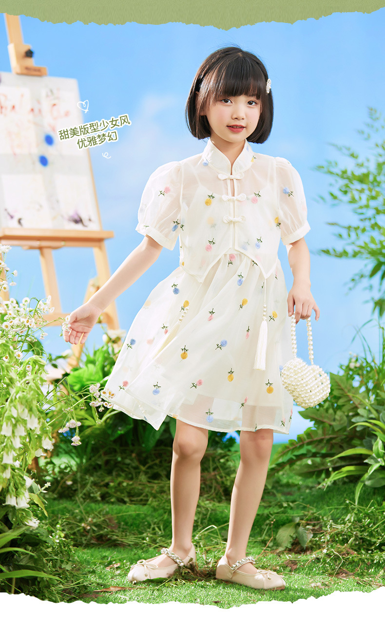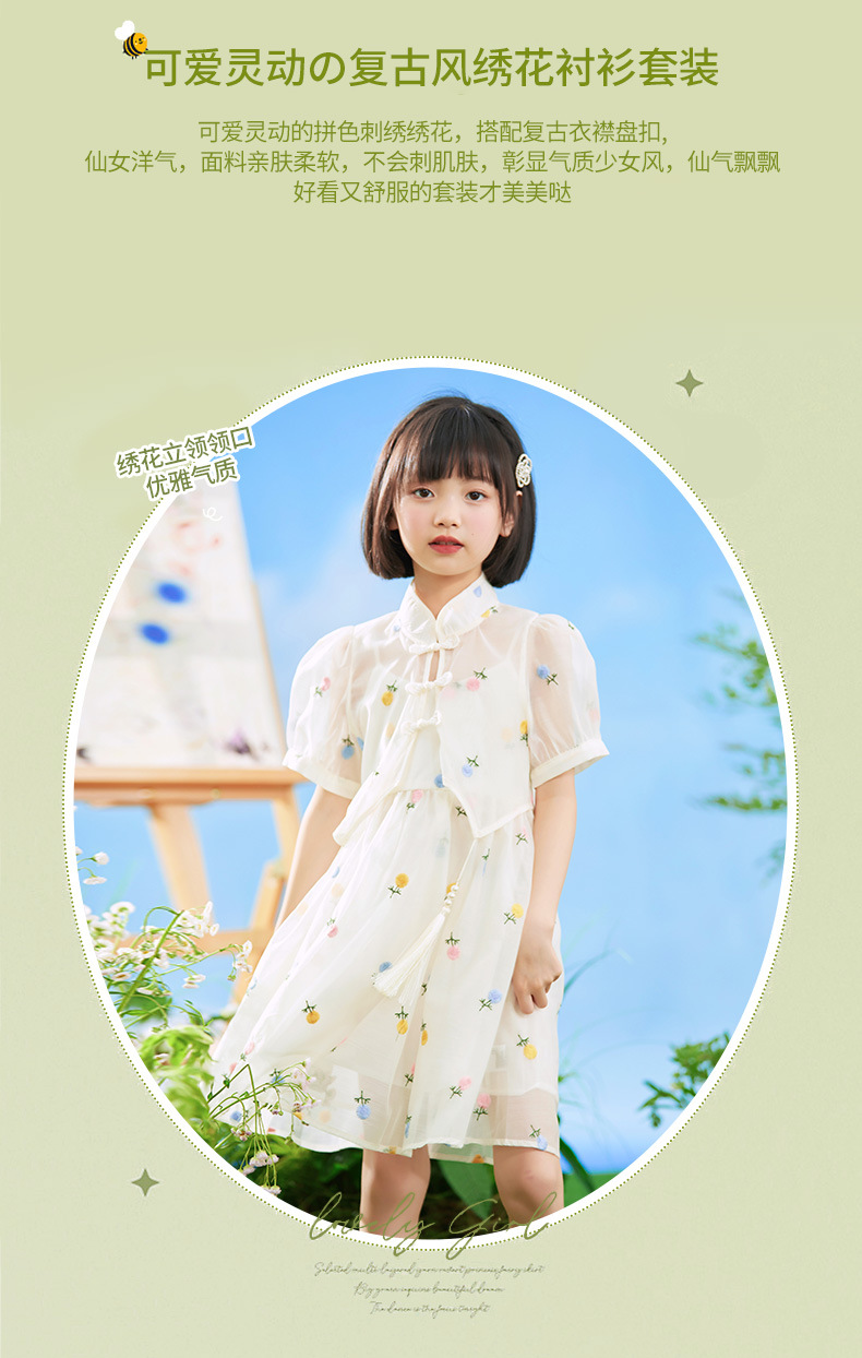 소녀 슬링 원피스 여름 2024 새로운 소녀 중국 스타일 빈티지 원피스 코트 투피스 세트스토어 가기