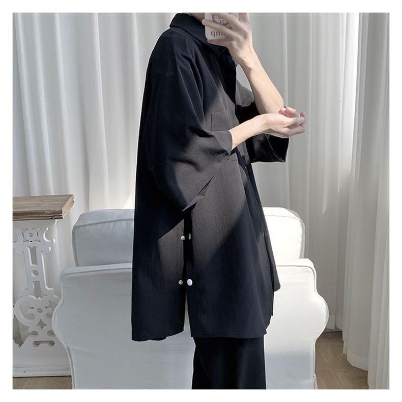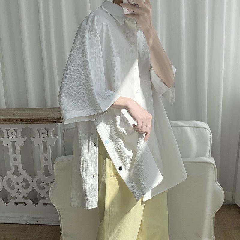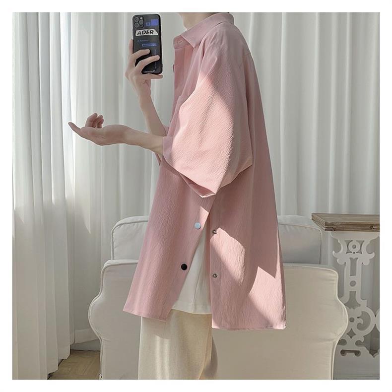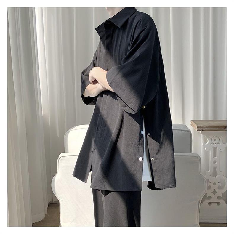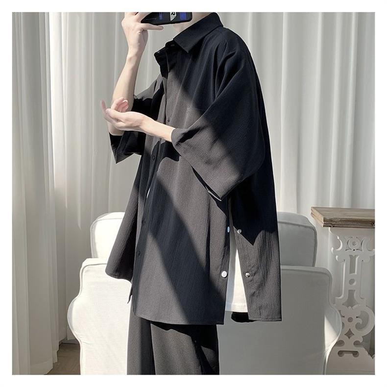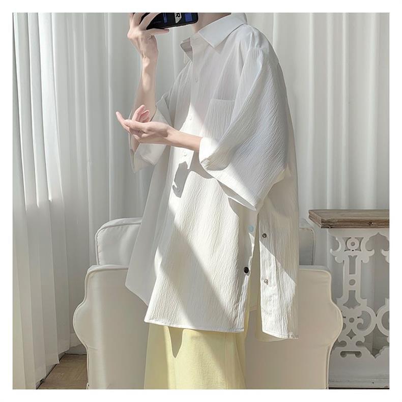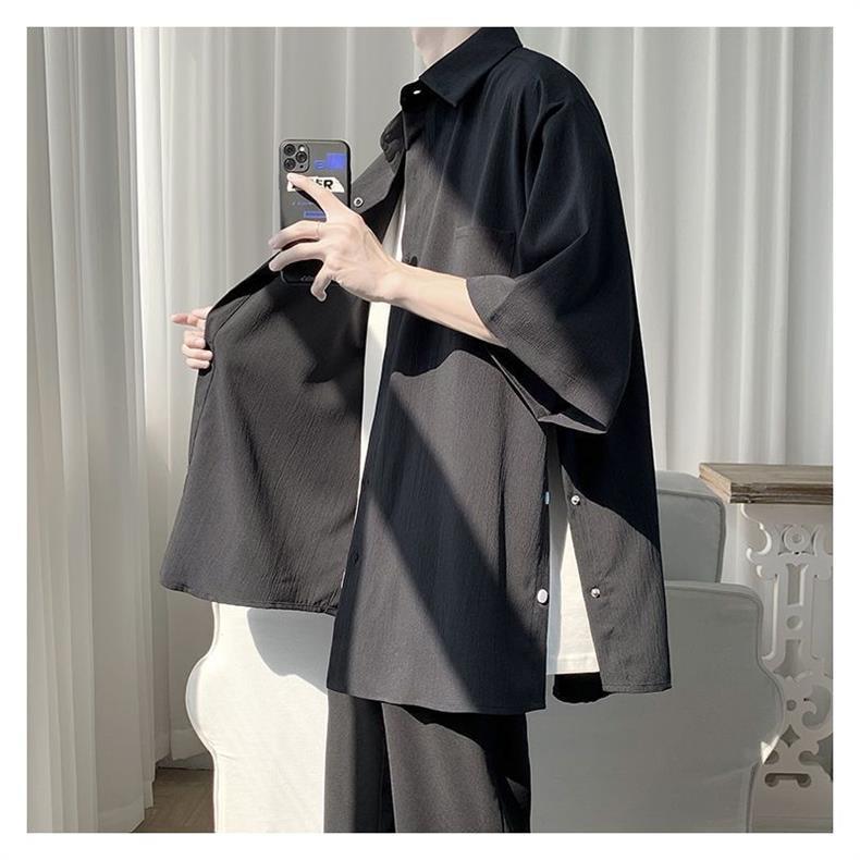 3부소매 셔츠 남성 여름 신작 아이스 실크 얇은 셔츠 캐주얼 일본식 루즈 인 트렌디 반팔 탑 트렌디