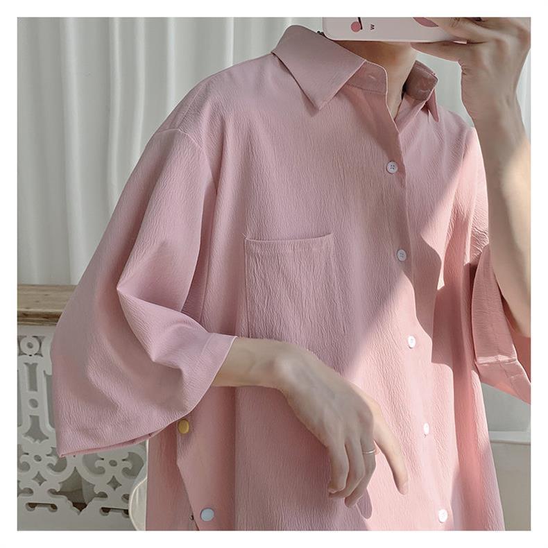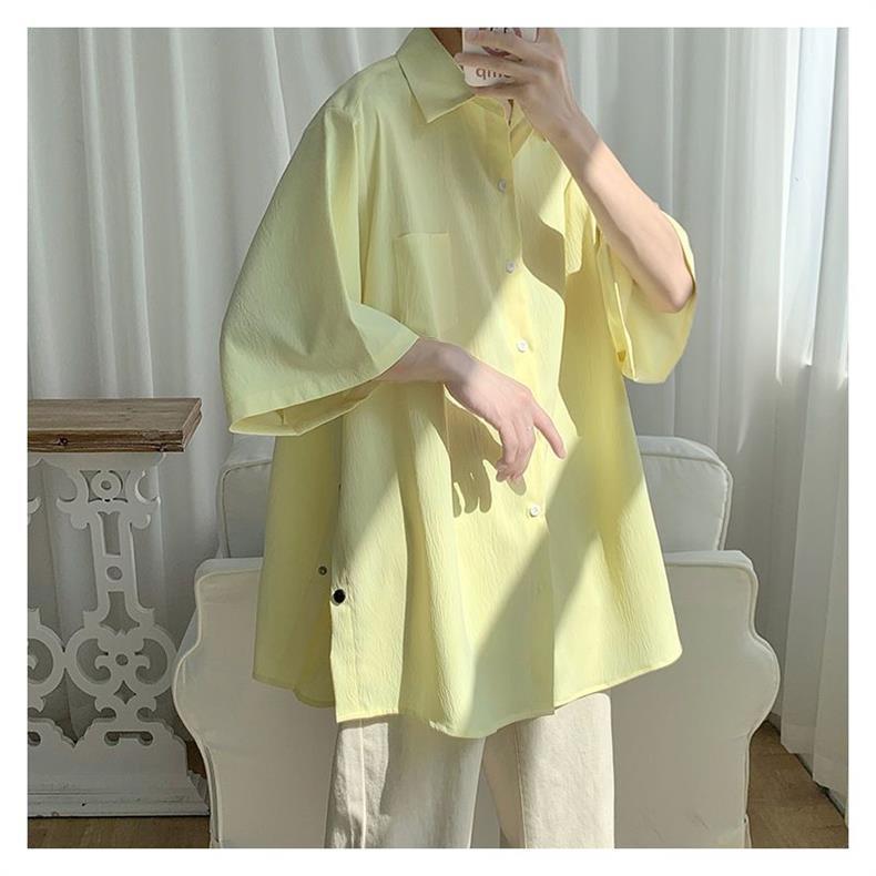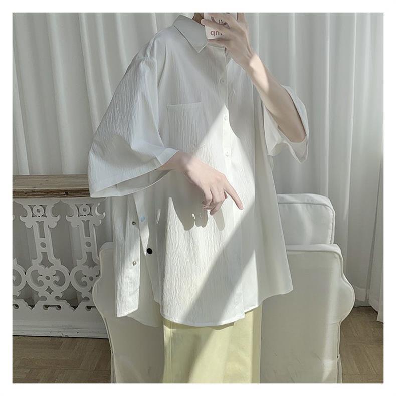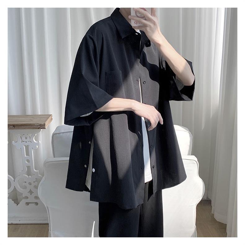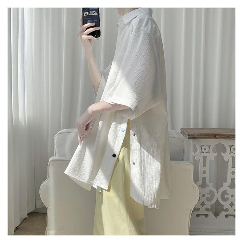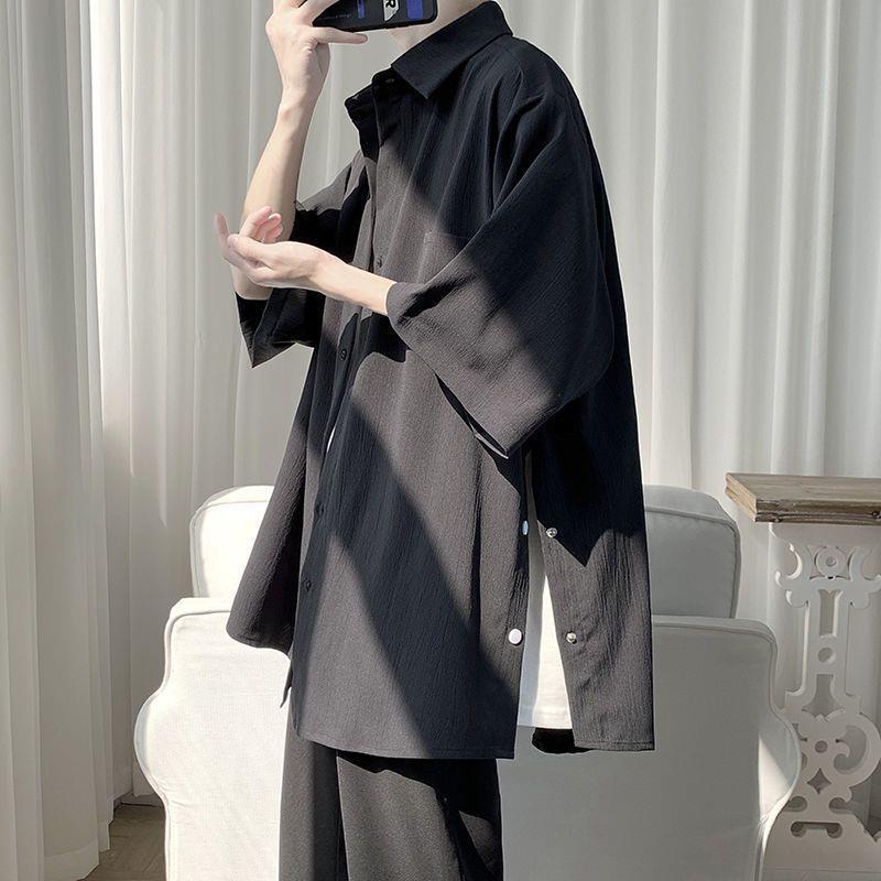 3부소매 셔츠 남성 여름 신작 아이스 실크 얇은 셔츠 캐주얼 일본식 루즈 인 트렌디 반팔 탑 트렌디스토어 가기