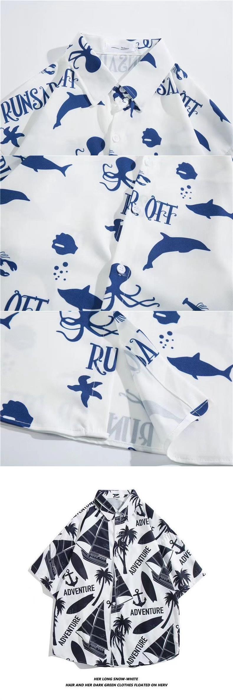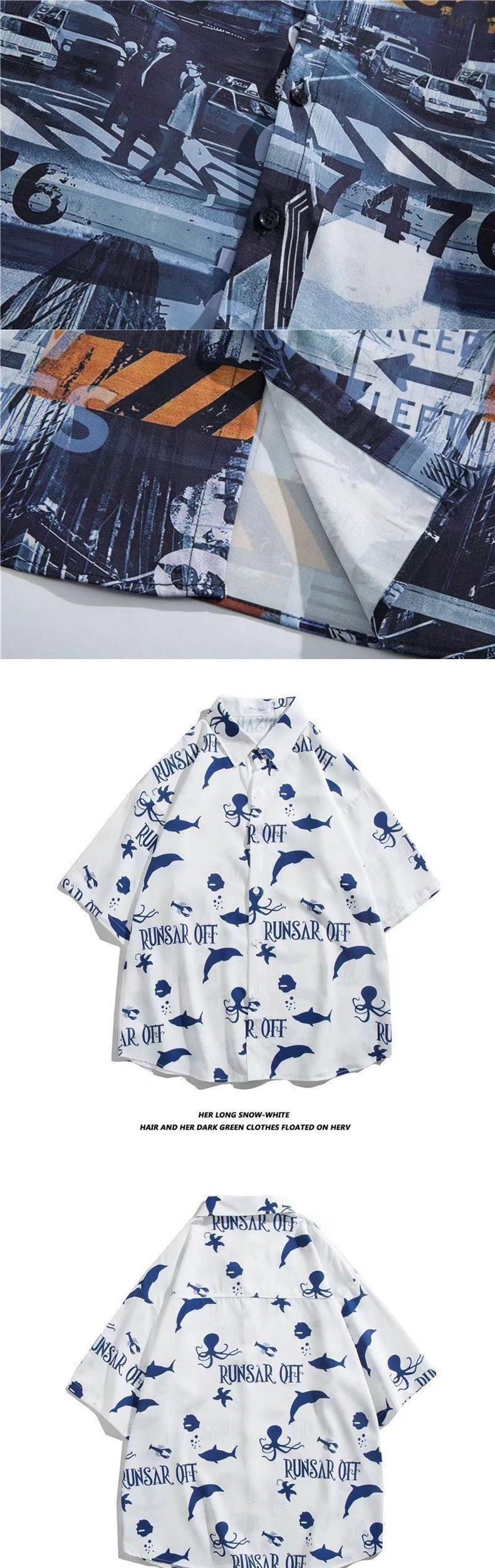 루피 낙서 반팔 셔츠 남자 여름 얇은 느슨한 유행 올매치 커플 셔츠 반소매