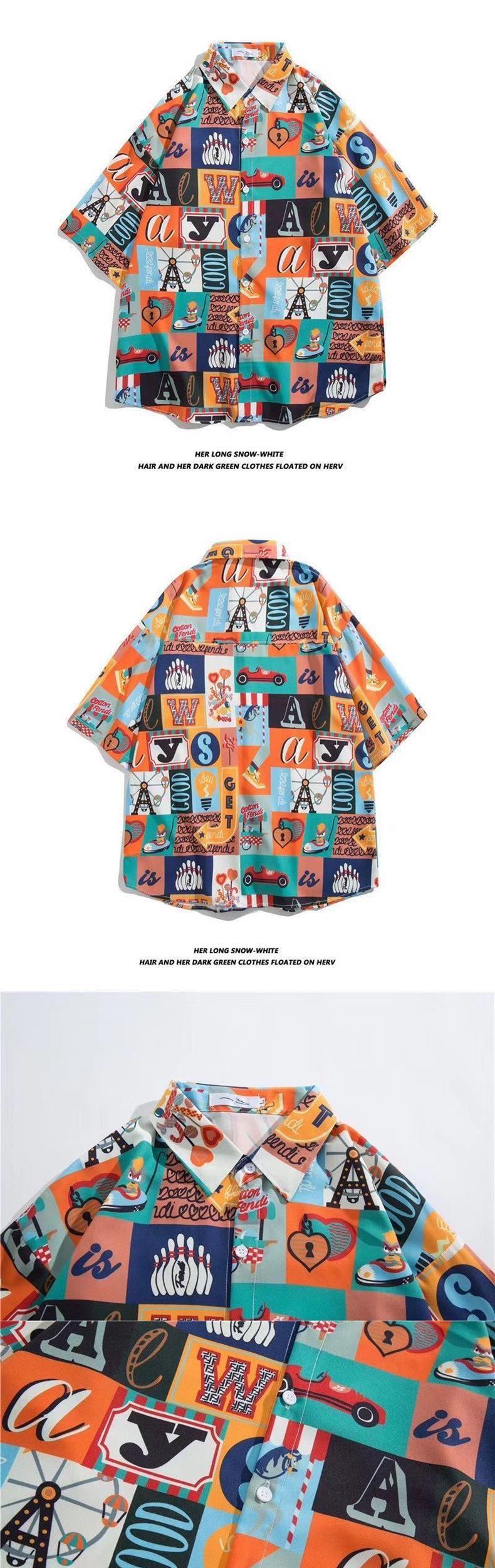 루피 낙서 반팔 셔츠 남자 여름 얇은 느슨한 유행 올매치 커플 셔츠 반소매스토어 가기