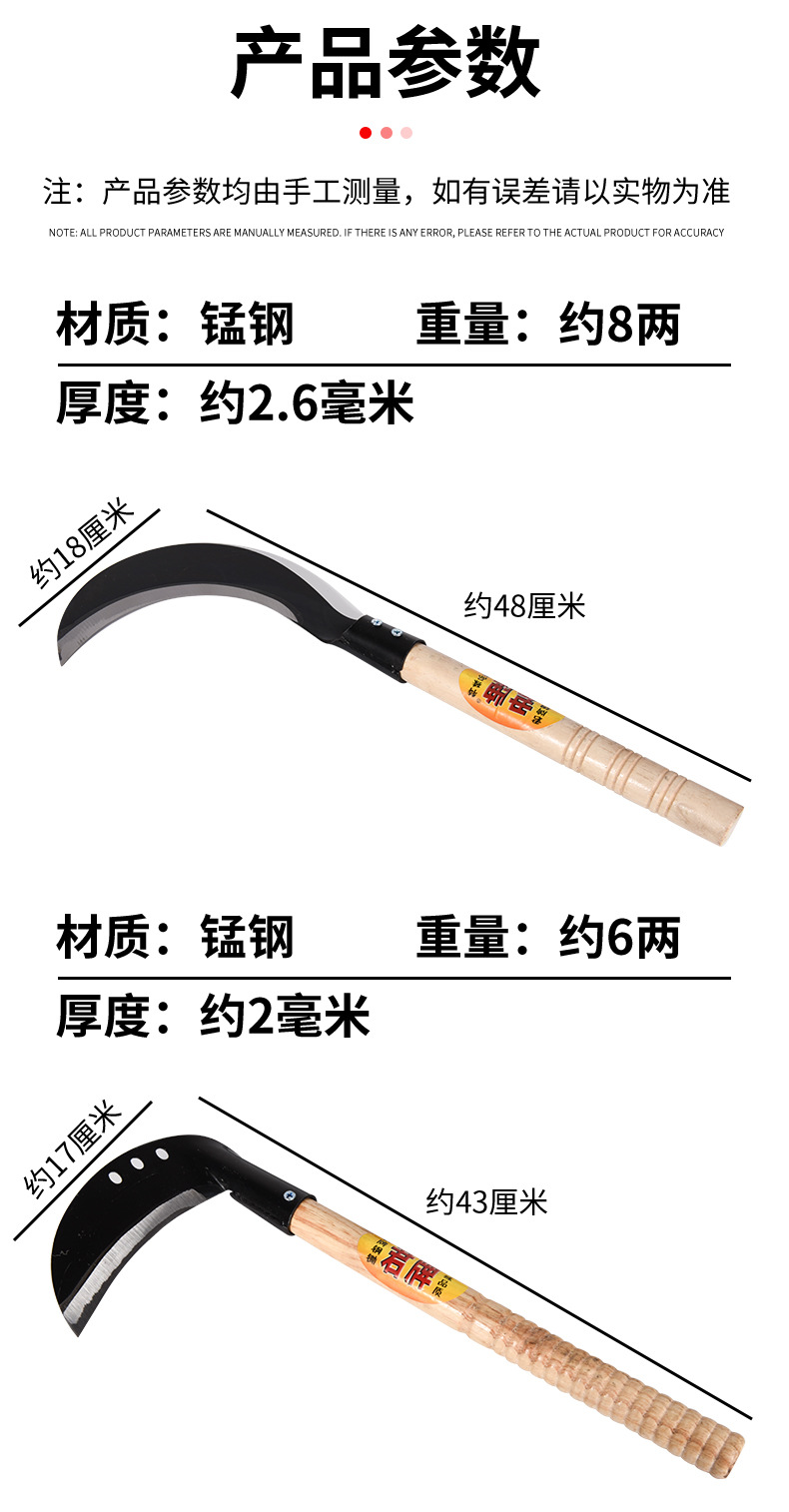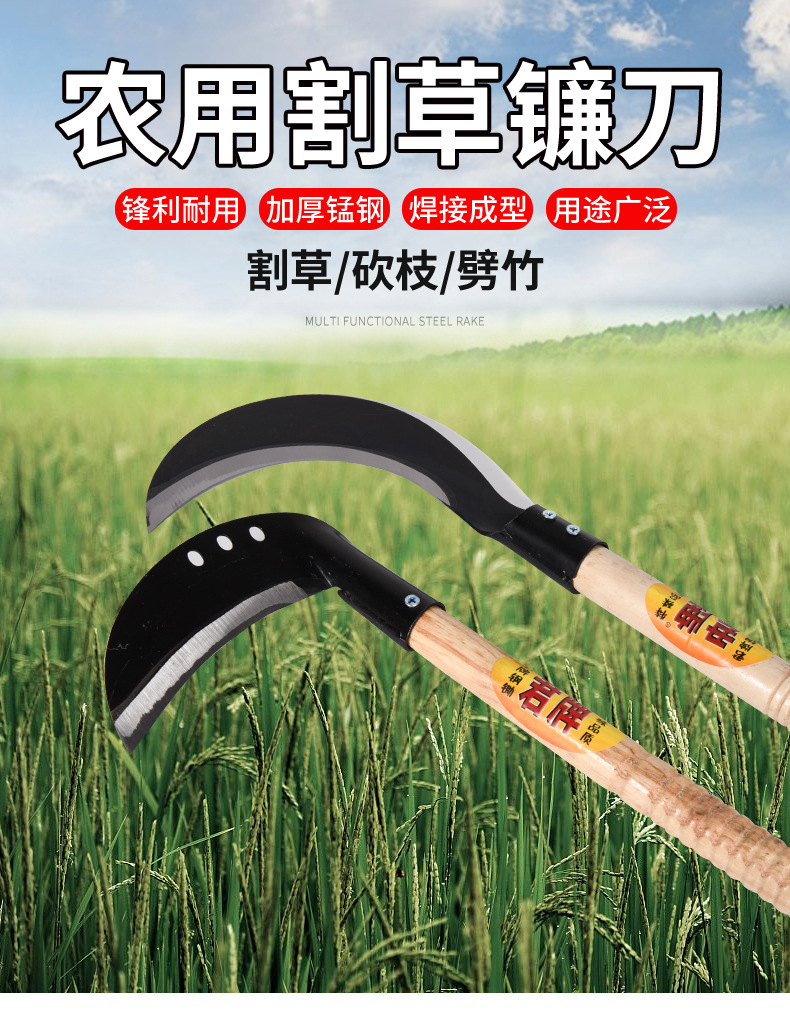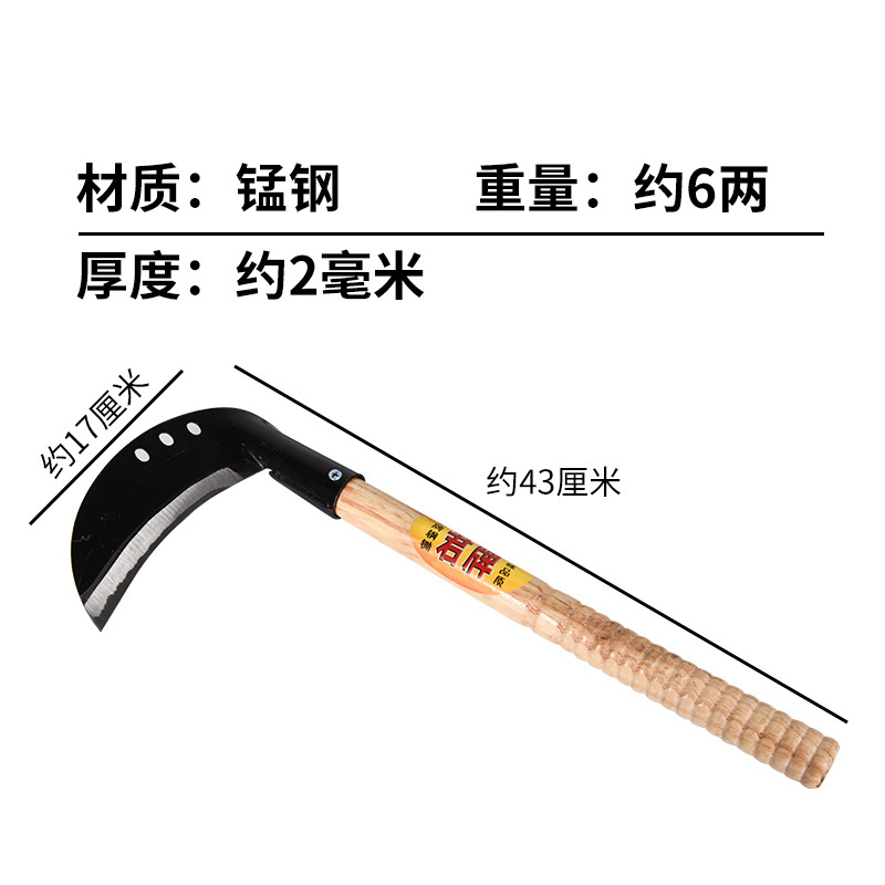 농업 낫 망간 강철 절단 쌀 옥수수 줄기 깎는 칼 야외 낚시를위한 열린 도로 허빙 초승달 냄새 나무 손잡이스토어 가기