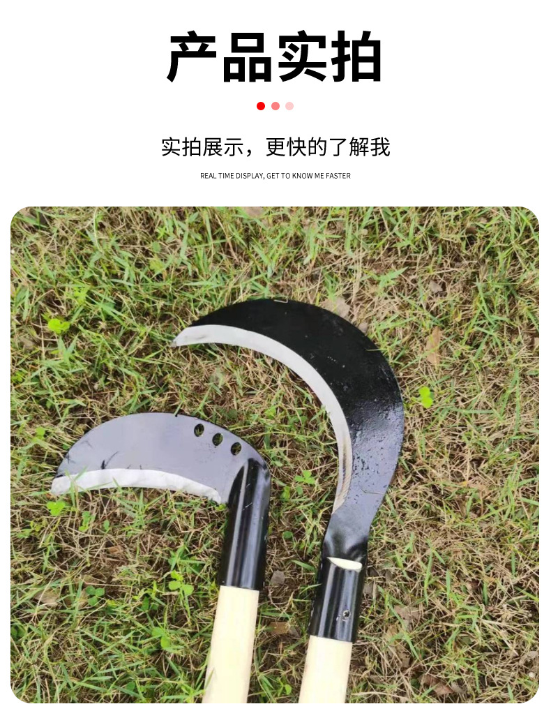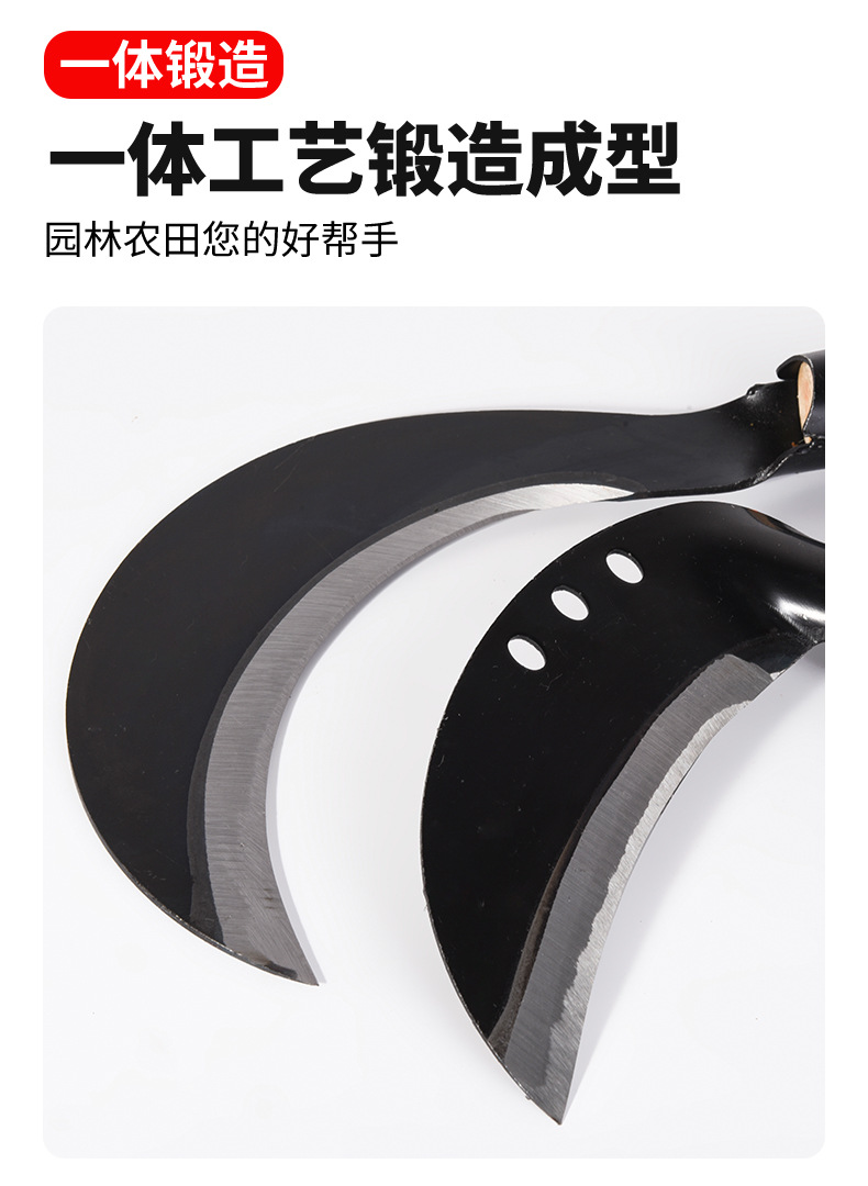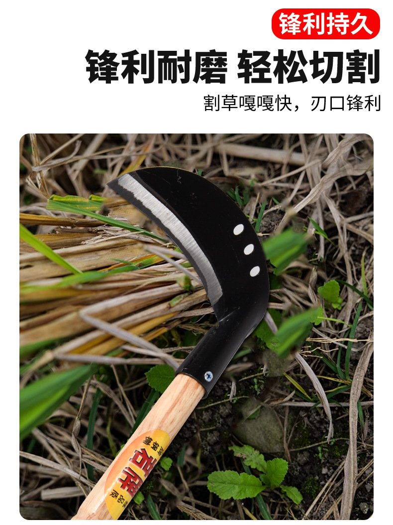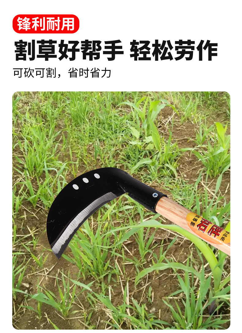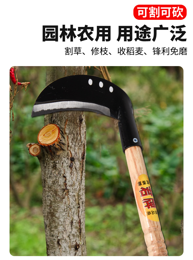 농업 낫 망간 강철 절단 쌀 옥수수 줄기 깎는 칼 야외 낚시를위한 열린 도로 허빙 초승달 냄새 나무 손잡이