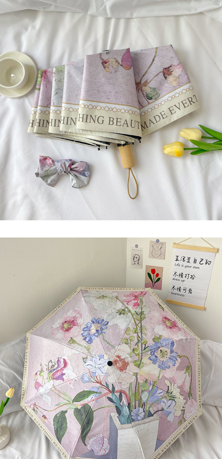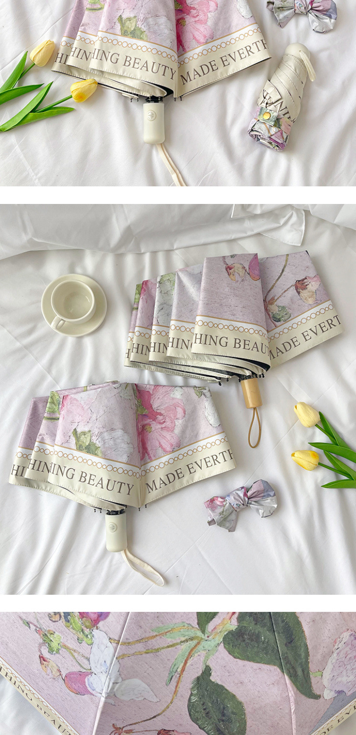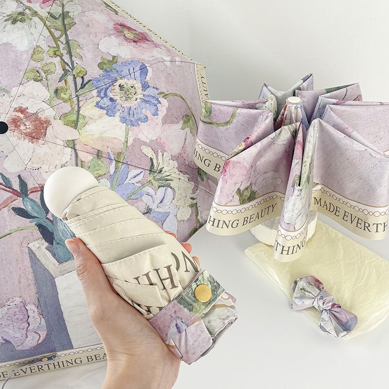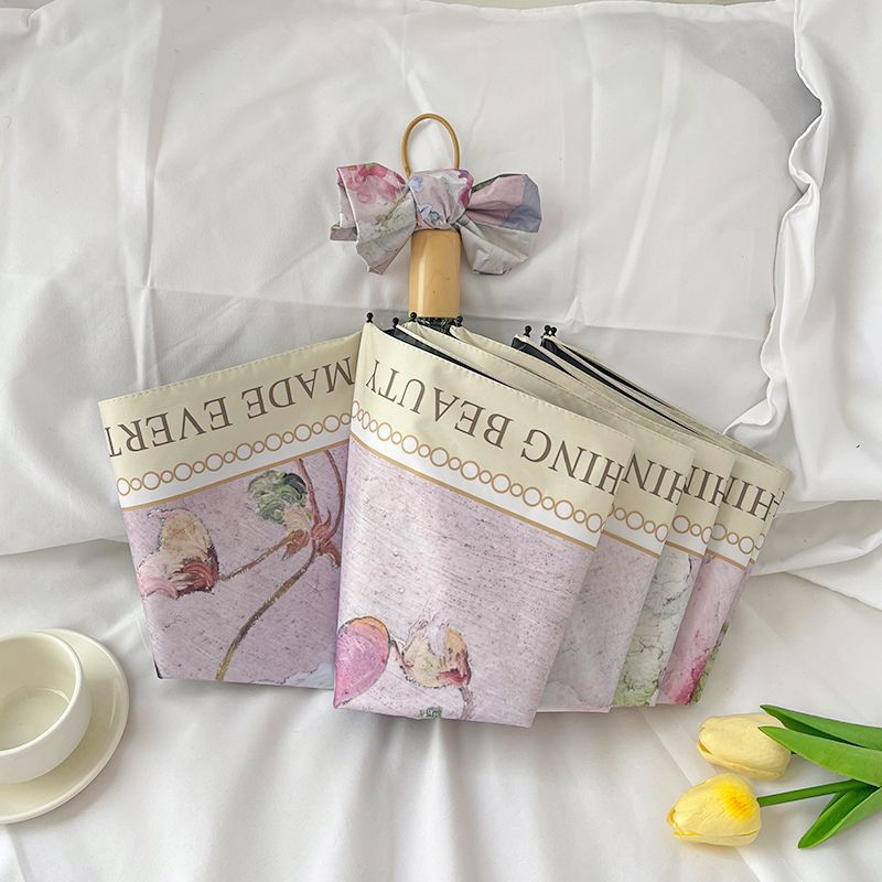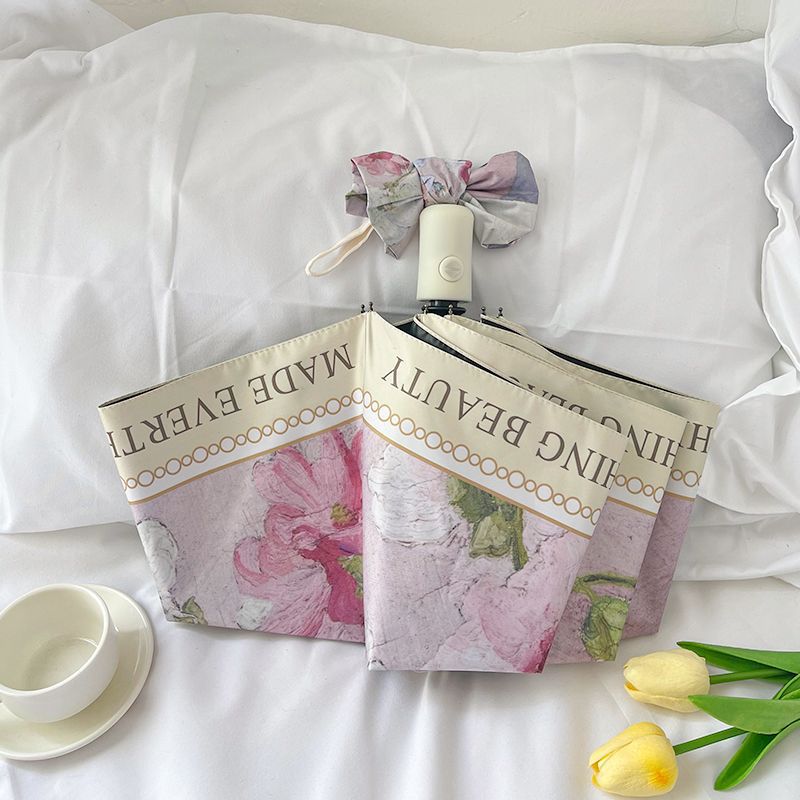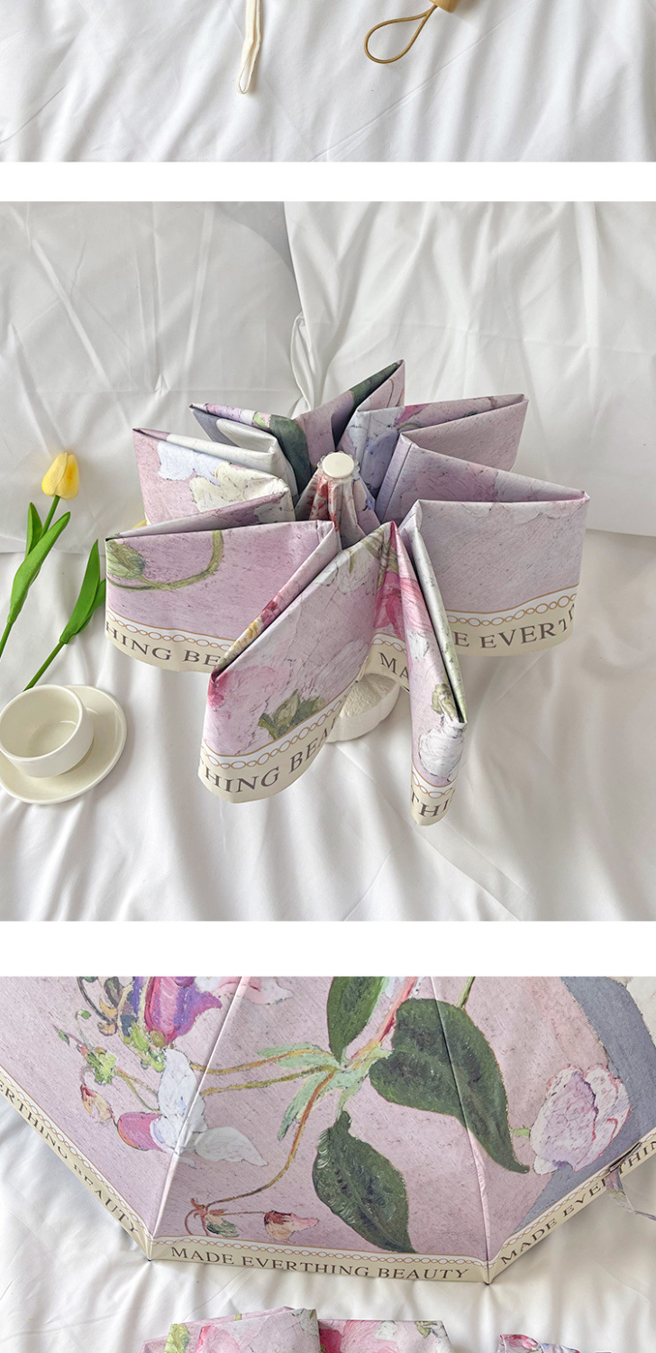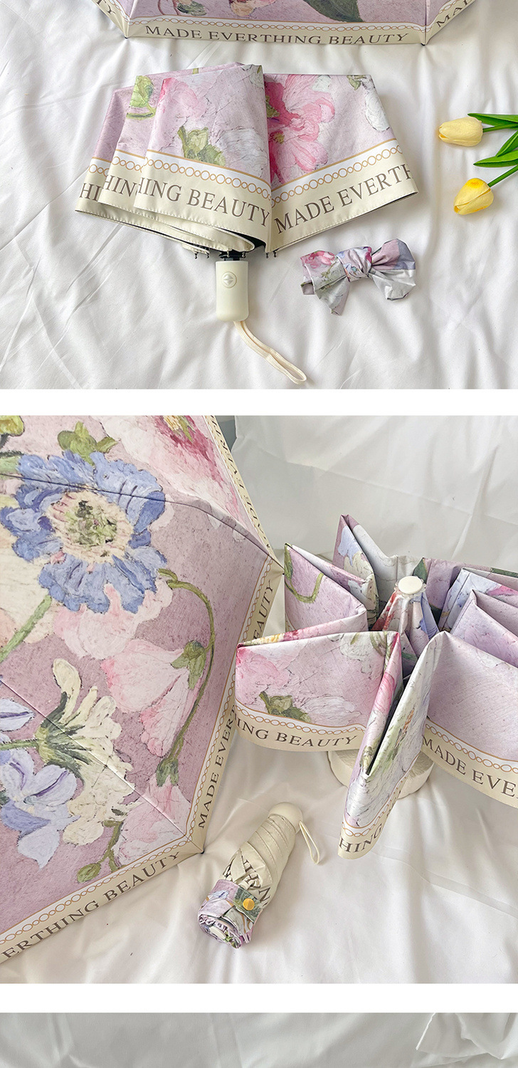 빈티지 유화 접히는 우산 여성의 높은 가치 햇빛과 비 이중 목적 태양 우산 선 스크린 및 UV 보호 완전 자동 차양