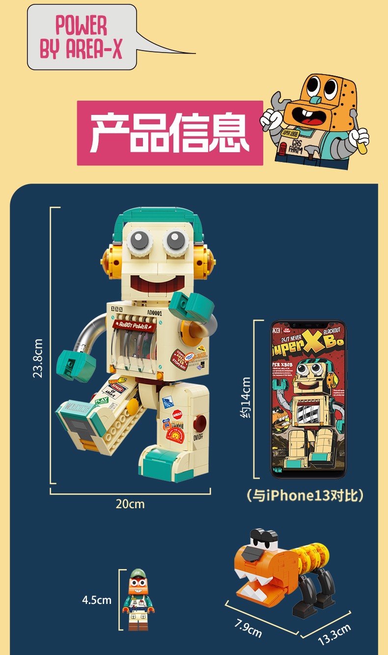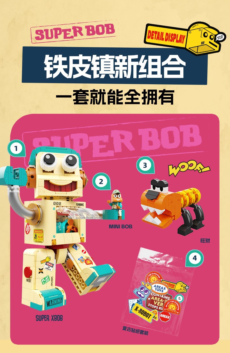 AREAX 철판마을 공동브랜드 로봇 블록 장난감 수제 조립 트렌디 장식품 생일 선물 남자아이용스토어 가기
