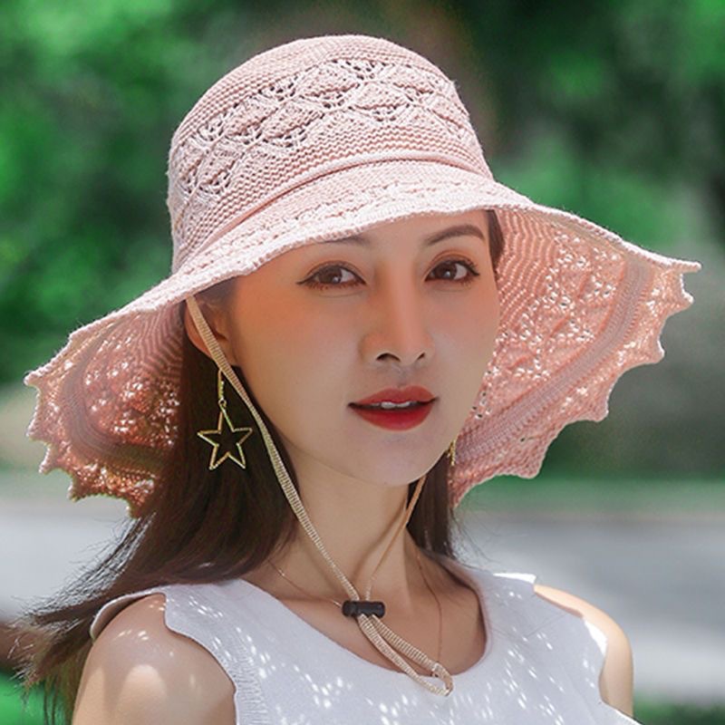 새로운 스타일 레이스 돔 모자 여름 여성 한국 스타일 태양 모자 큰 브림 비치 모자 니트 모자 태양 모자