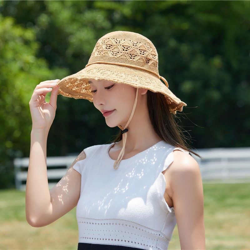 새로운 스타일 레이스 돔 모자 여름 여성 한국 스타일 태양 모자 큰 브림 비치 모자 니트 모자 태양 모자스토어 가기