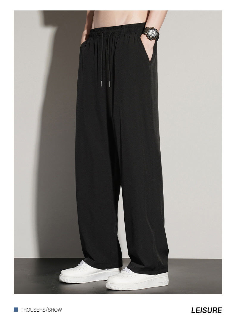 아이스 실크 쿨 와이드 레그 스트레이트 팬츠 남자 여름 얇은 디퍼 루즈 올 매치 청소년 스포츠 캐주얼 바지스토어 가기