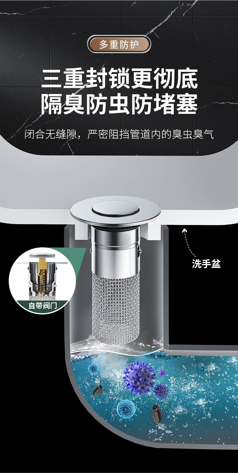 바닥 배수구 필터 세척 분지 플러그인 푸시-인 여행 코어 서랍 워시 분지 물 플러그 바닥 배수
