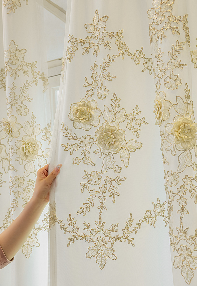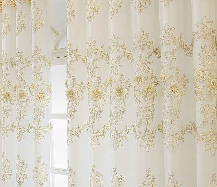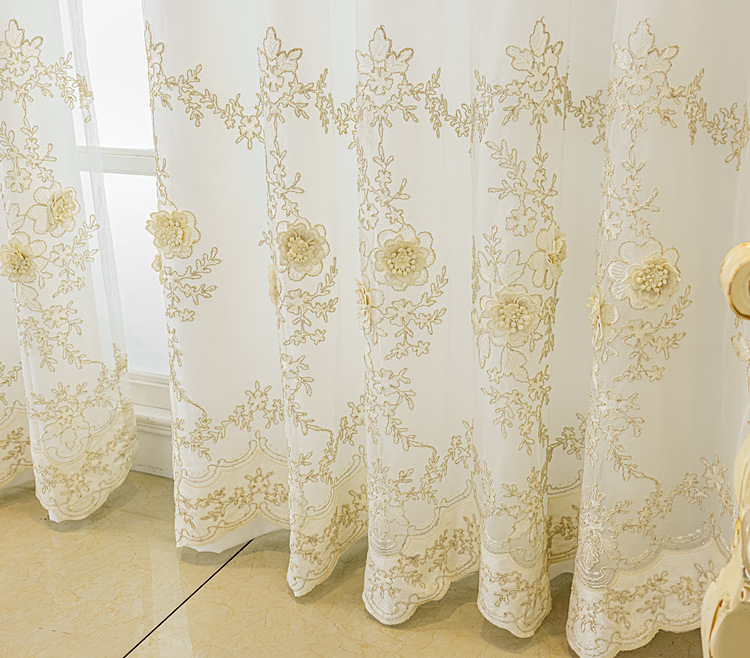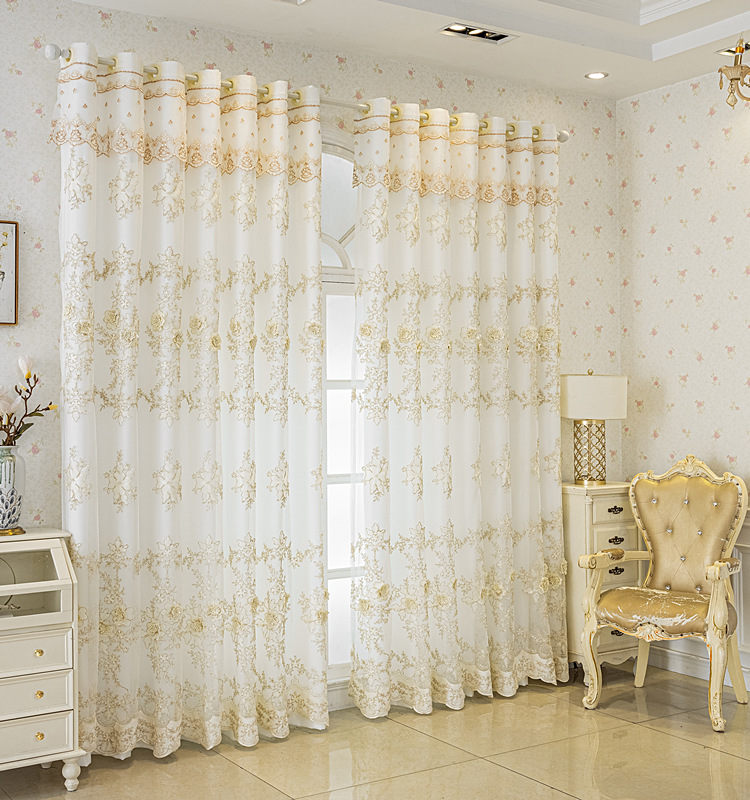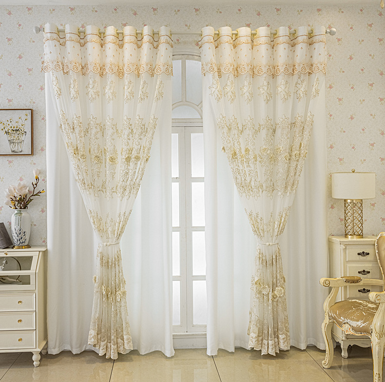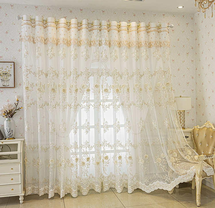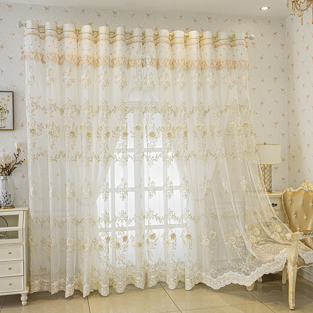유럽 스타일의 고급 양각 자수 창 화면 커튼 더블 레이어 통합 투명 거실 침실 발코니 완제품 도매스토어 가기