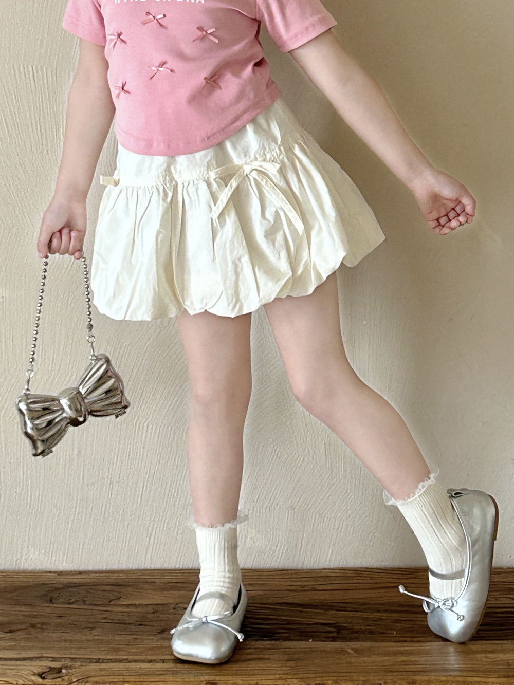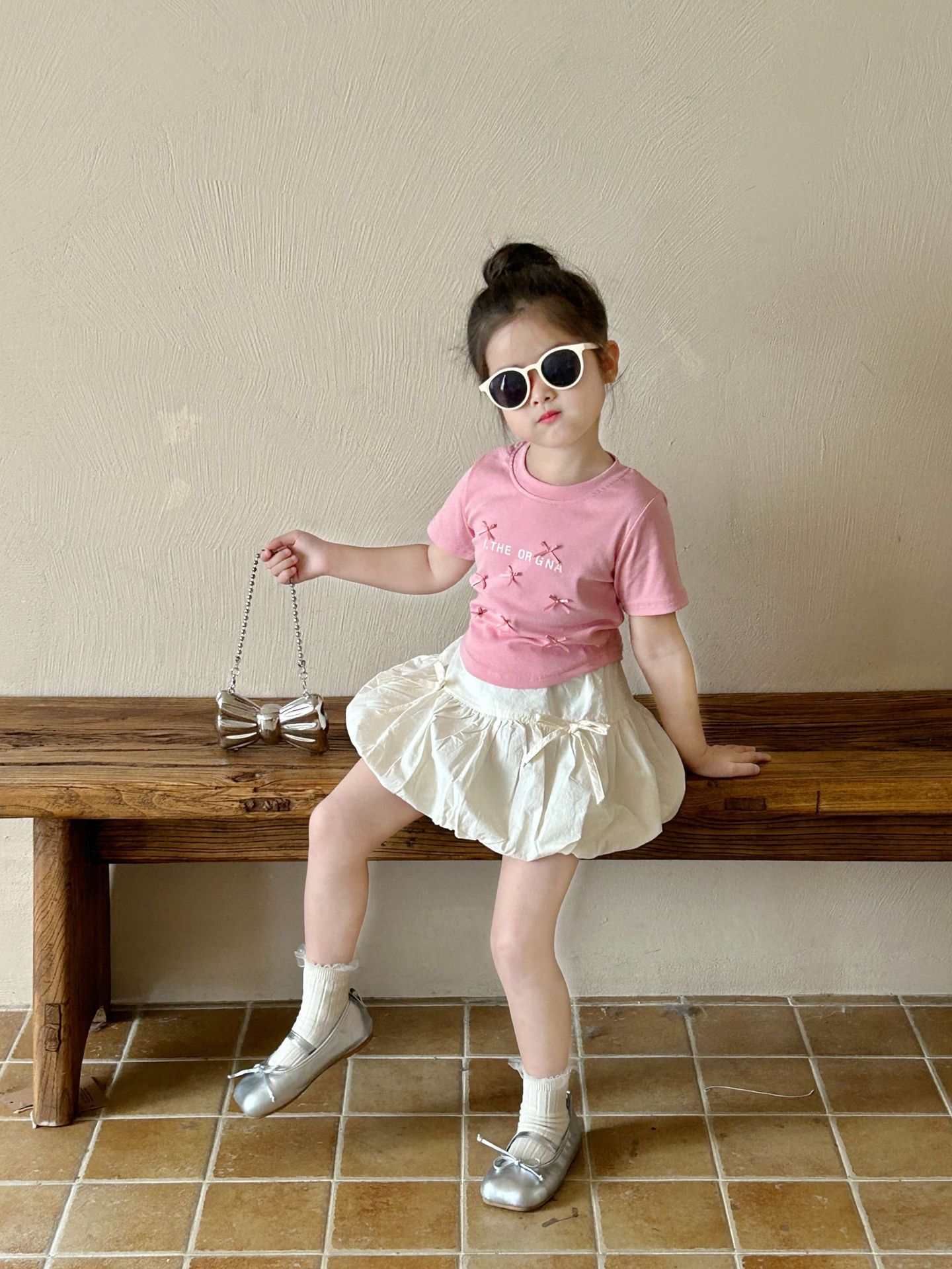 2025 여름 신상 여아 리본 꽃봉오리 스커트 한국 스타일 아동 짧은 치마 아기 패셔너블 다용도 스커트