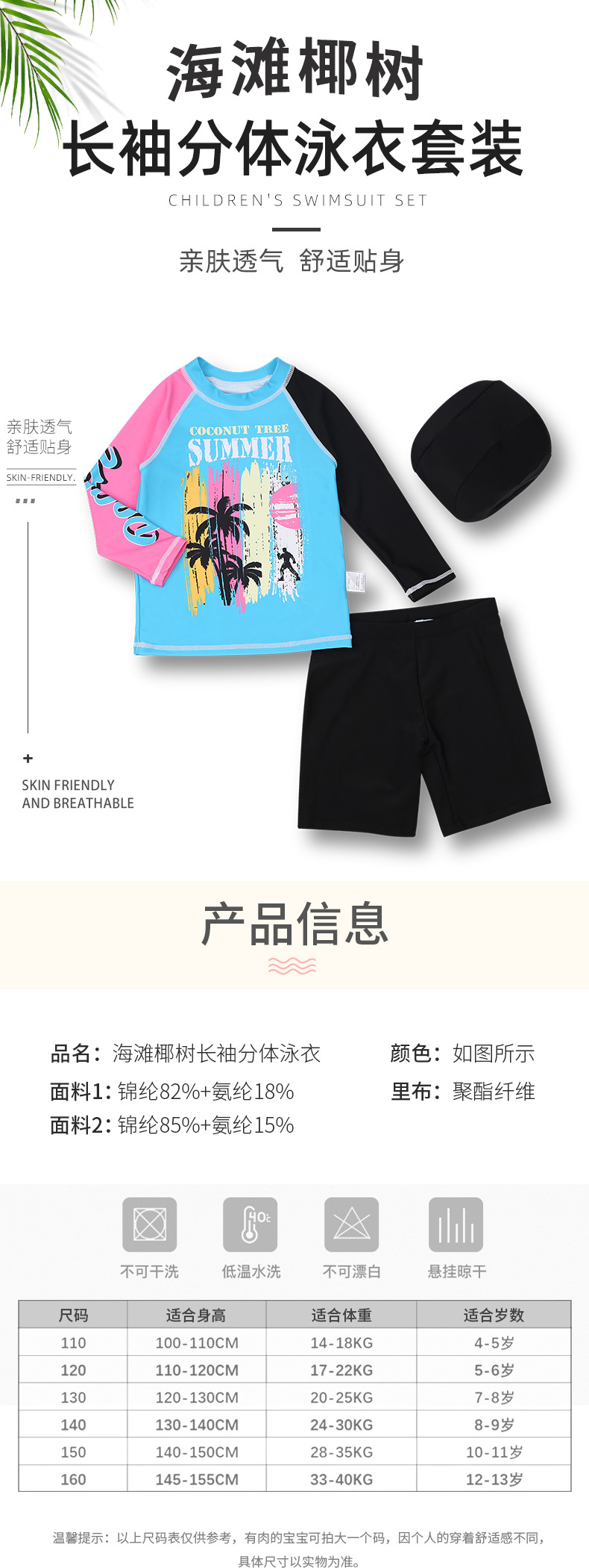 어린이 수영복 수영모 소녀 긴팔 자외선 차단 속건 수영복 세트 분리형 귀여운 아기 속건 세트