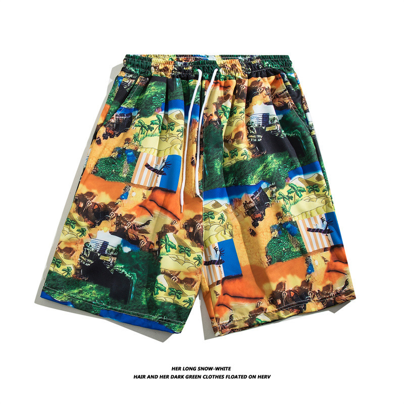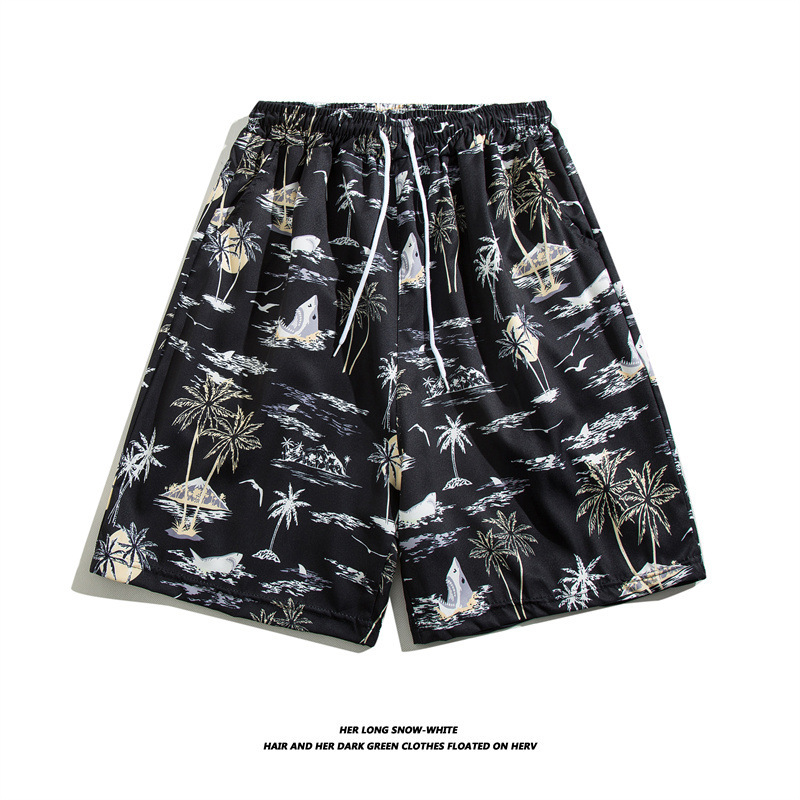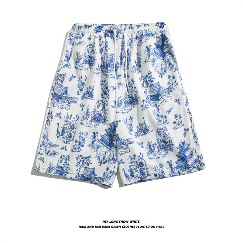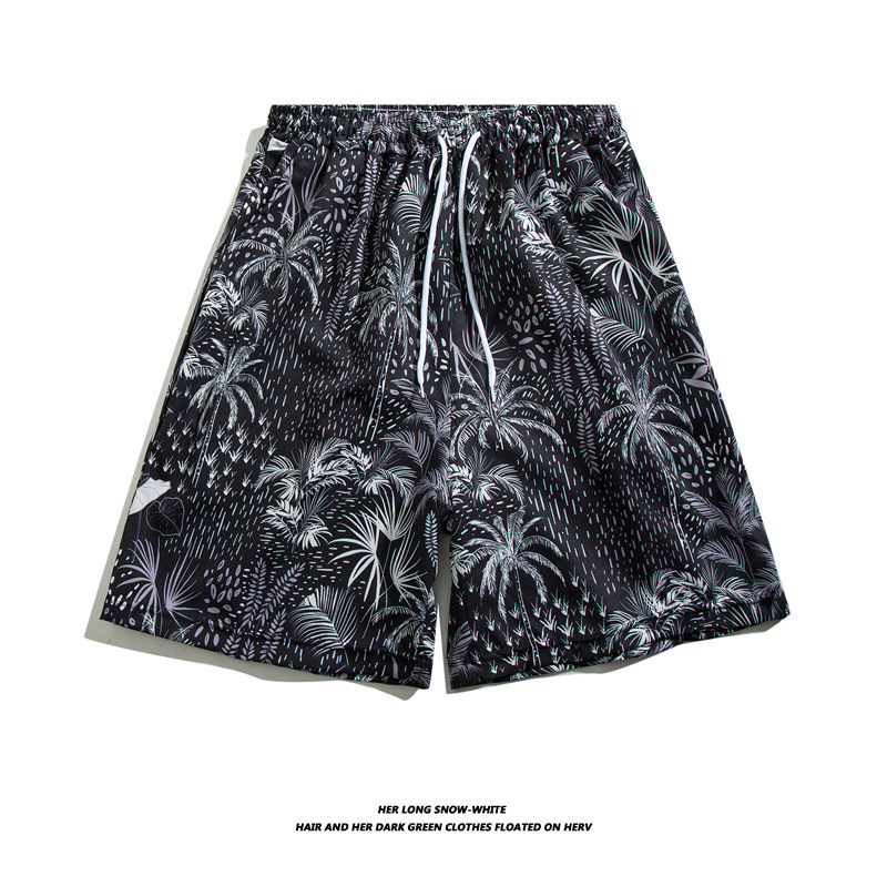 비치 바지 남자 여름 아이스 실크 얇은 꽃 반바지 느슨한 스트레이트 유행 브랜드 캐주얼 홈 5 점 퀵 드라이 바지
