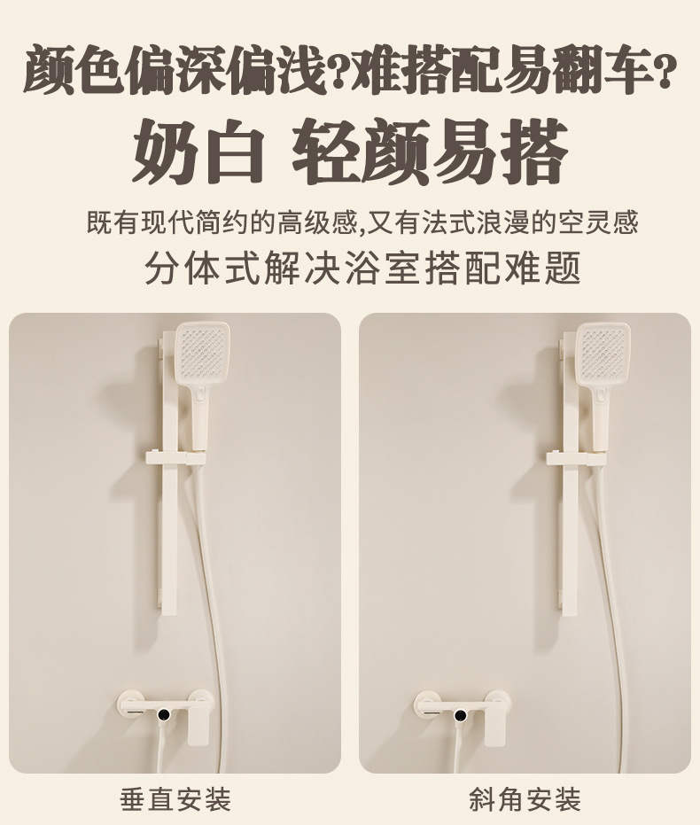 크림 화이트 욕실 샤워 샤워 비 펀치 새로운 호텔 스타일 리프팅 샤워 전체 구리 수도꼭지