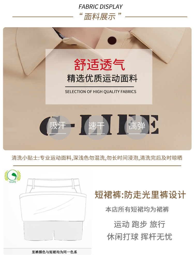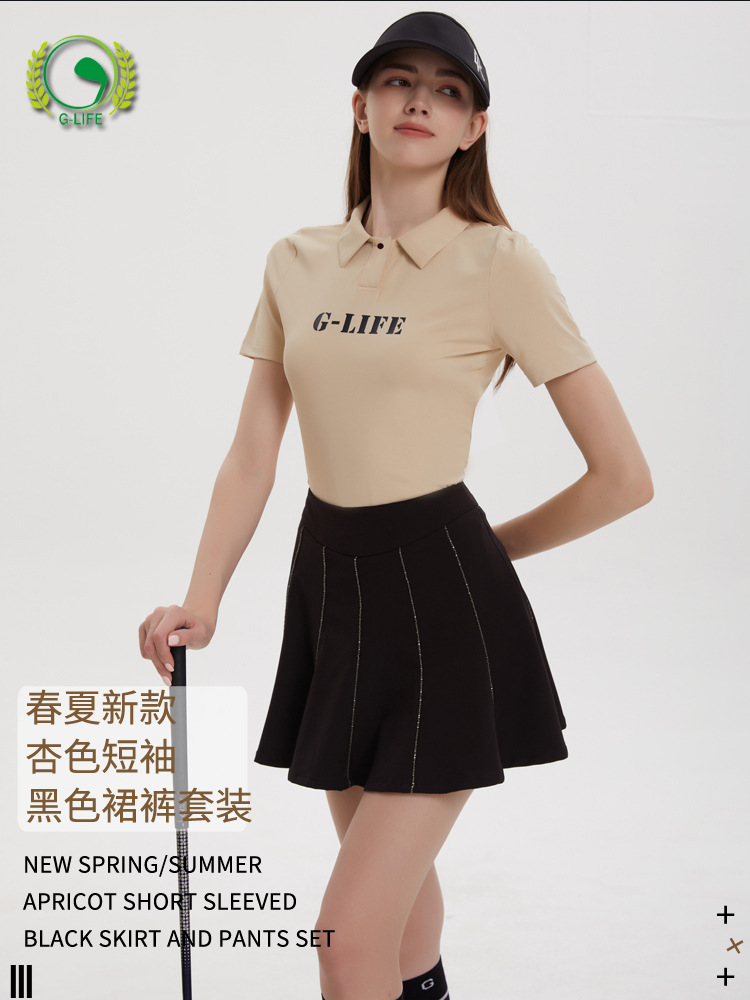 G-LIFE 골프 의류 여성 여름 세트 반팔 티셔츠 여성용 슬림 핏 여성 의류 스포츠 스커트