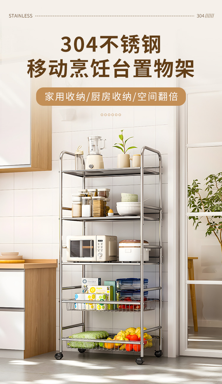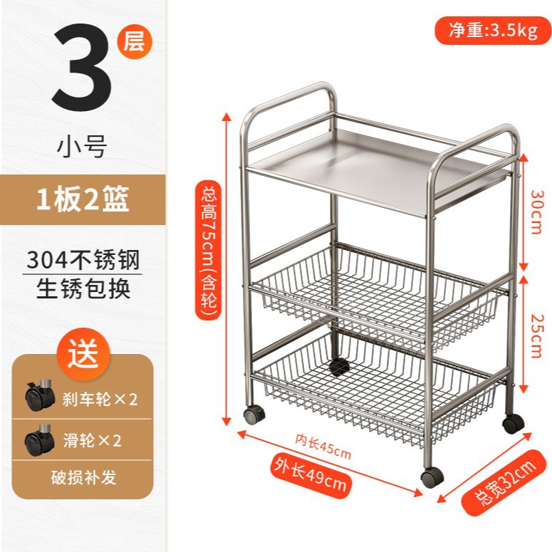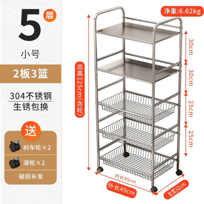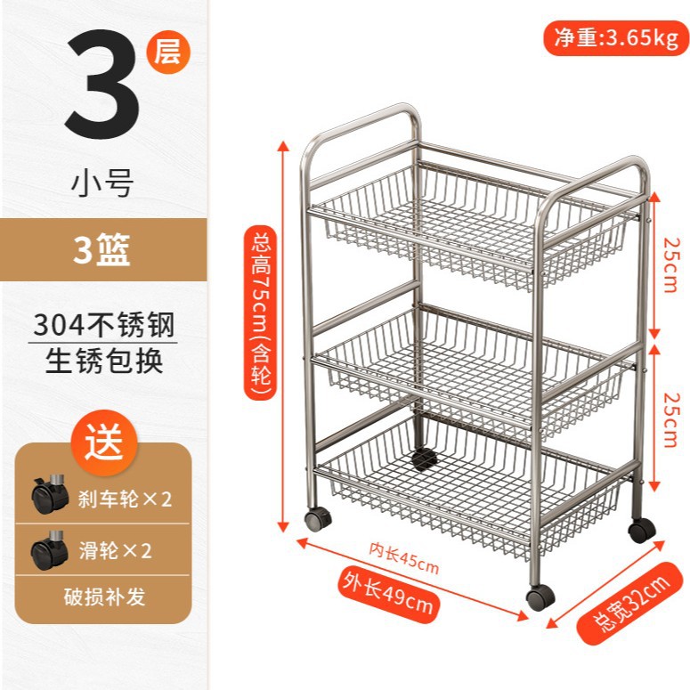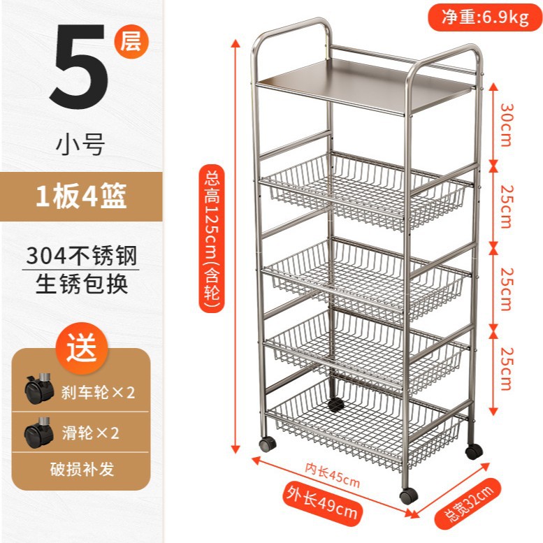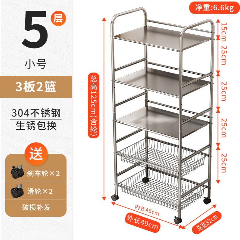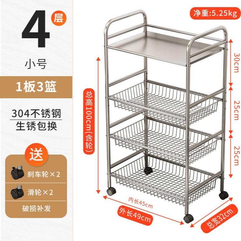 주방 보관 랙 스테인레스 스틸 바닥 다층 이동식 보관 랙 잡화 주방 용품 용 가정용 선반