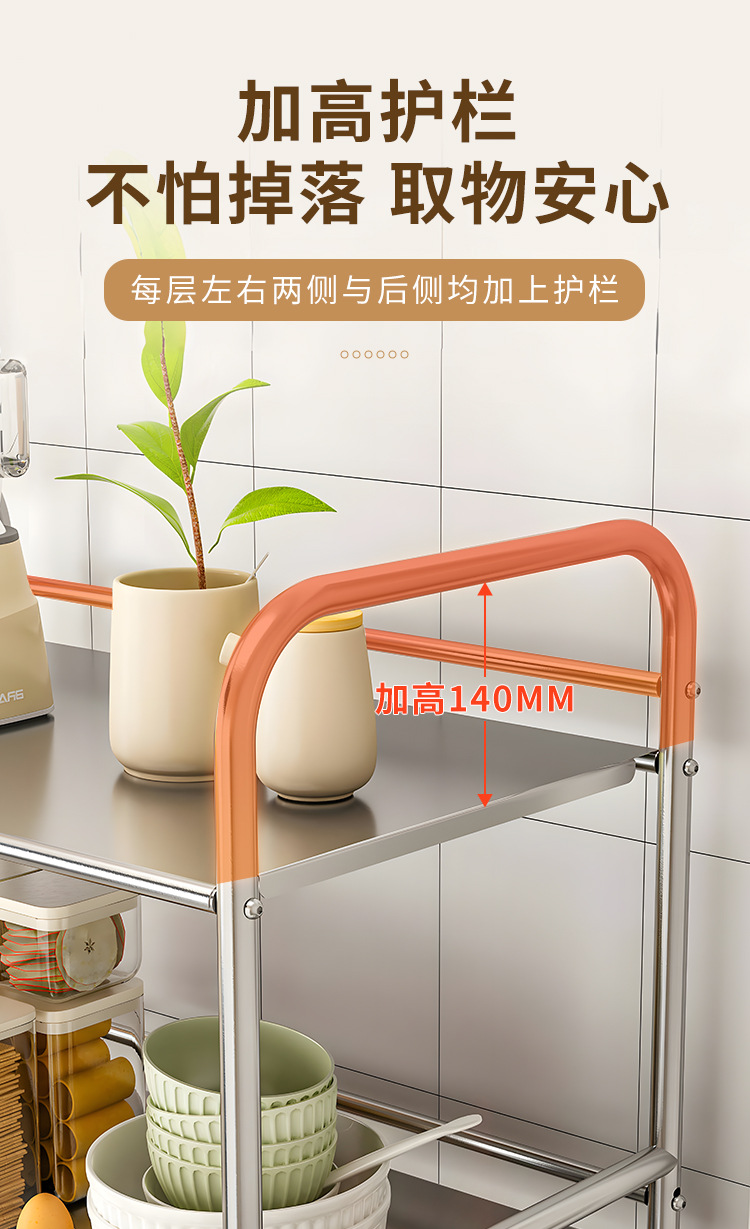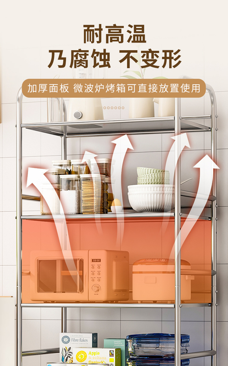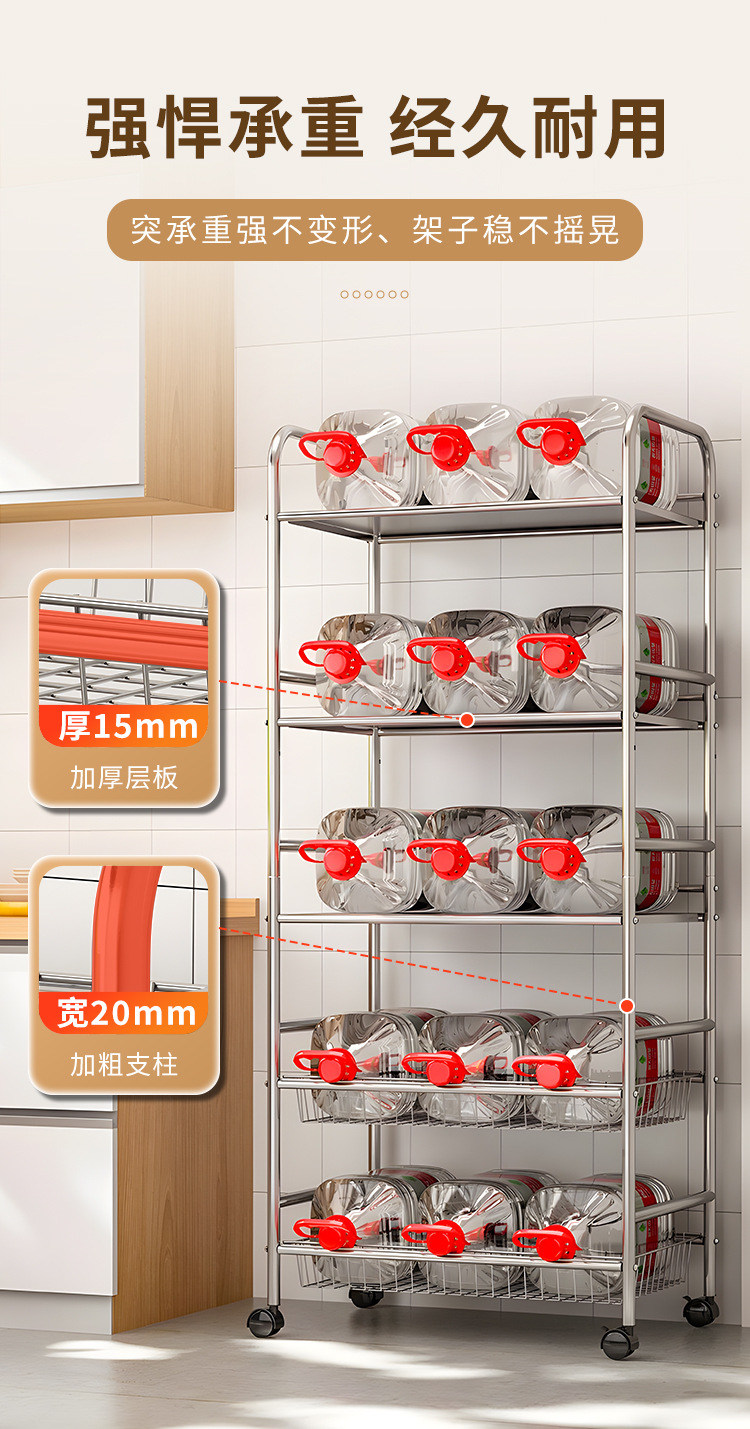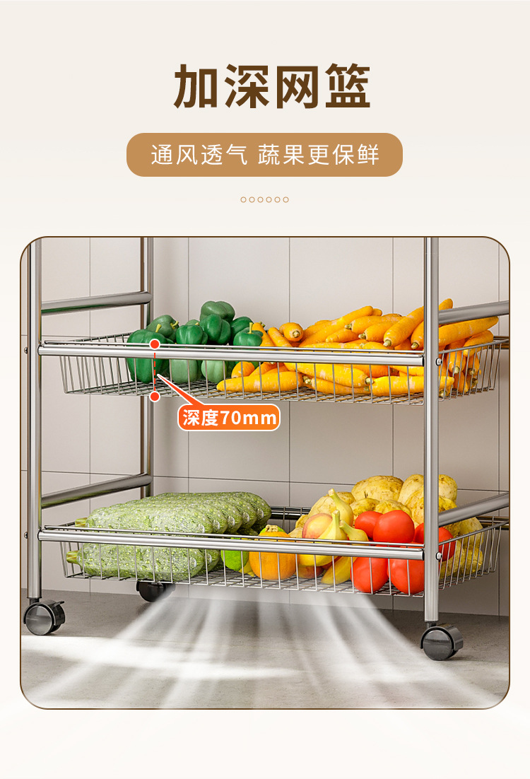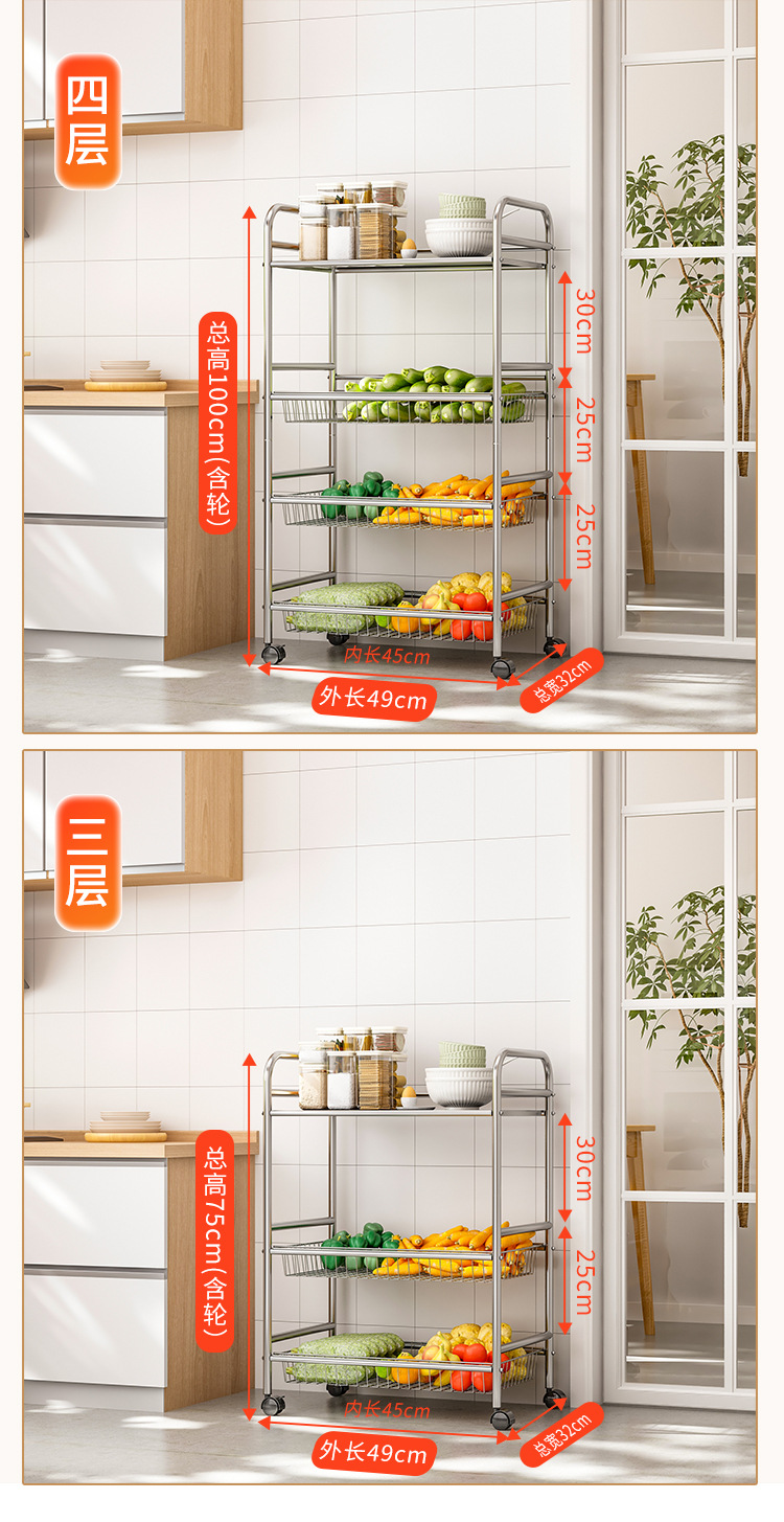 주방 보관 랙 스테인레스 스틸 바닥 다층 이동식 보관 랙 잡화 주방 용품 용 가정용 선반