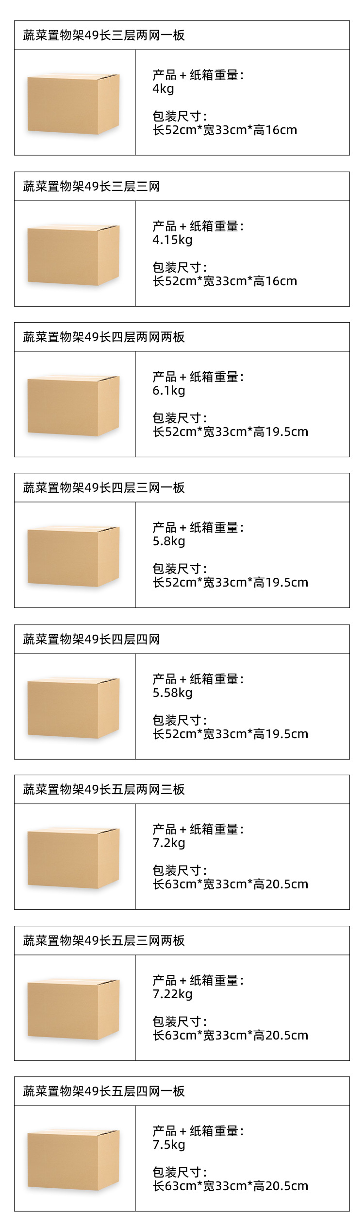 • 야채 트롤리 보관함 - 5겹, 보드 3개, 그물 2개, 소형 - 49cm