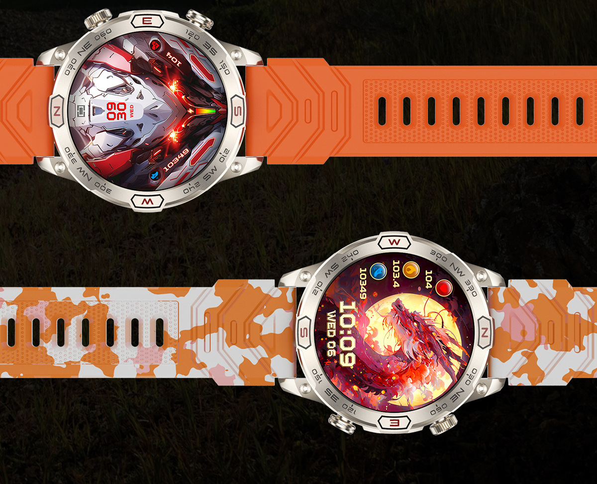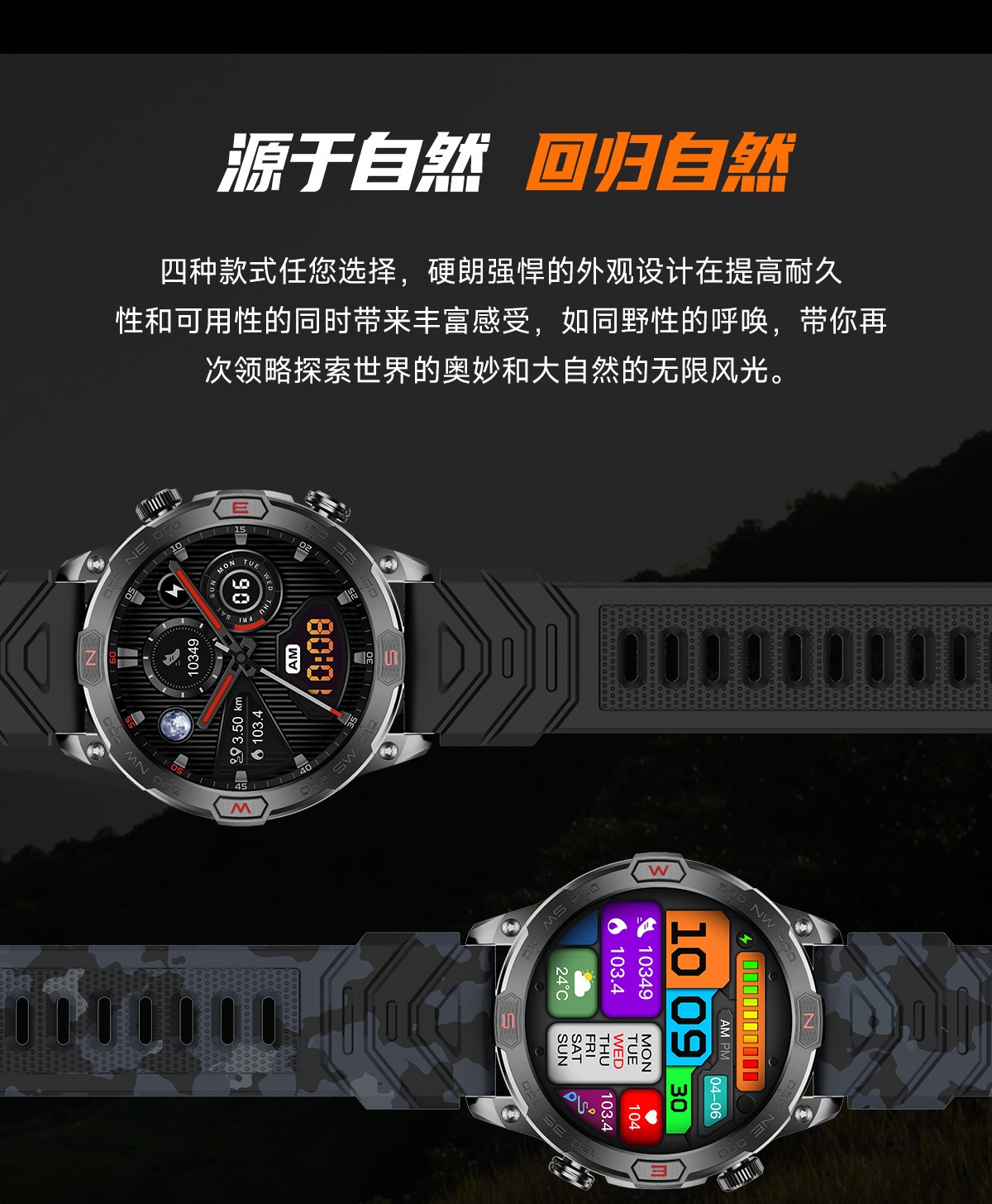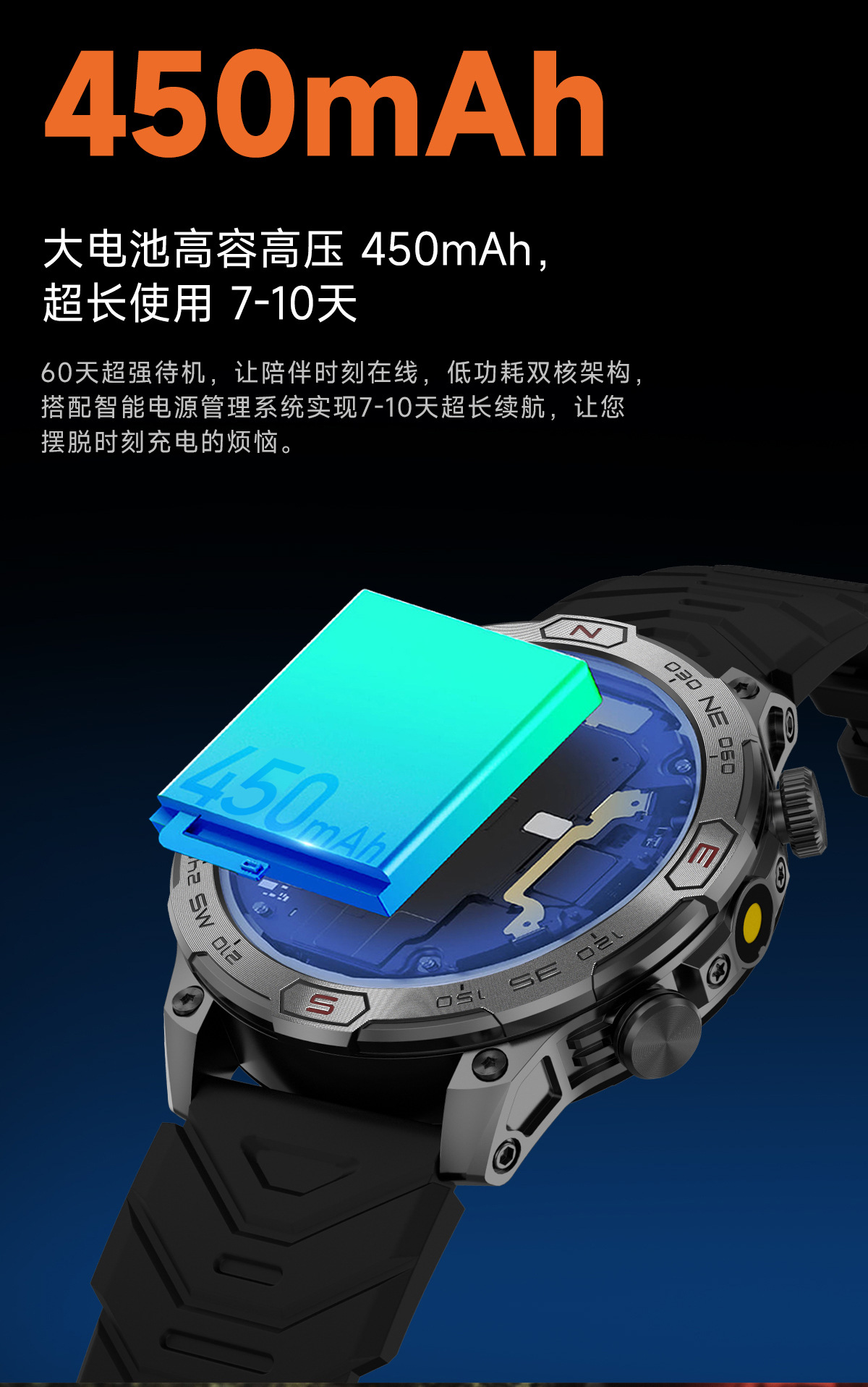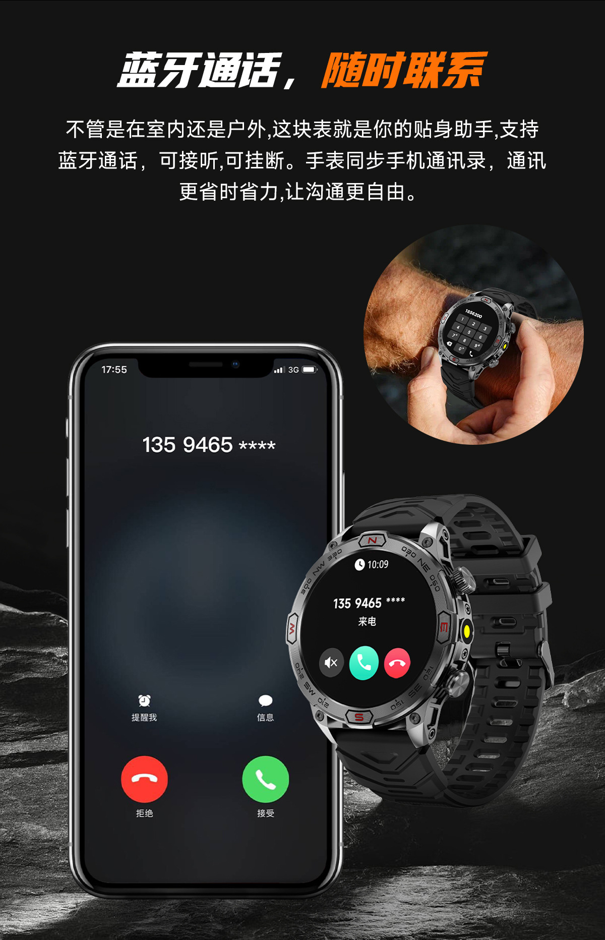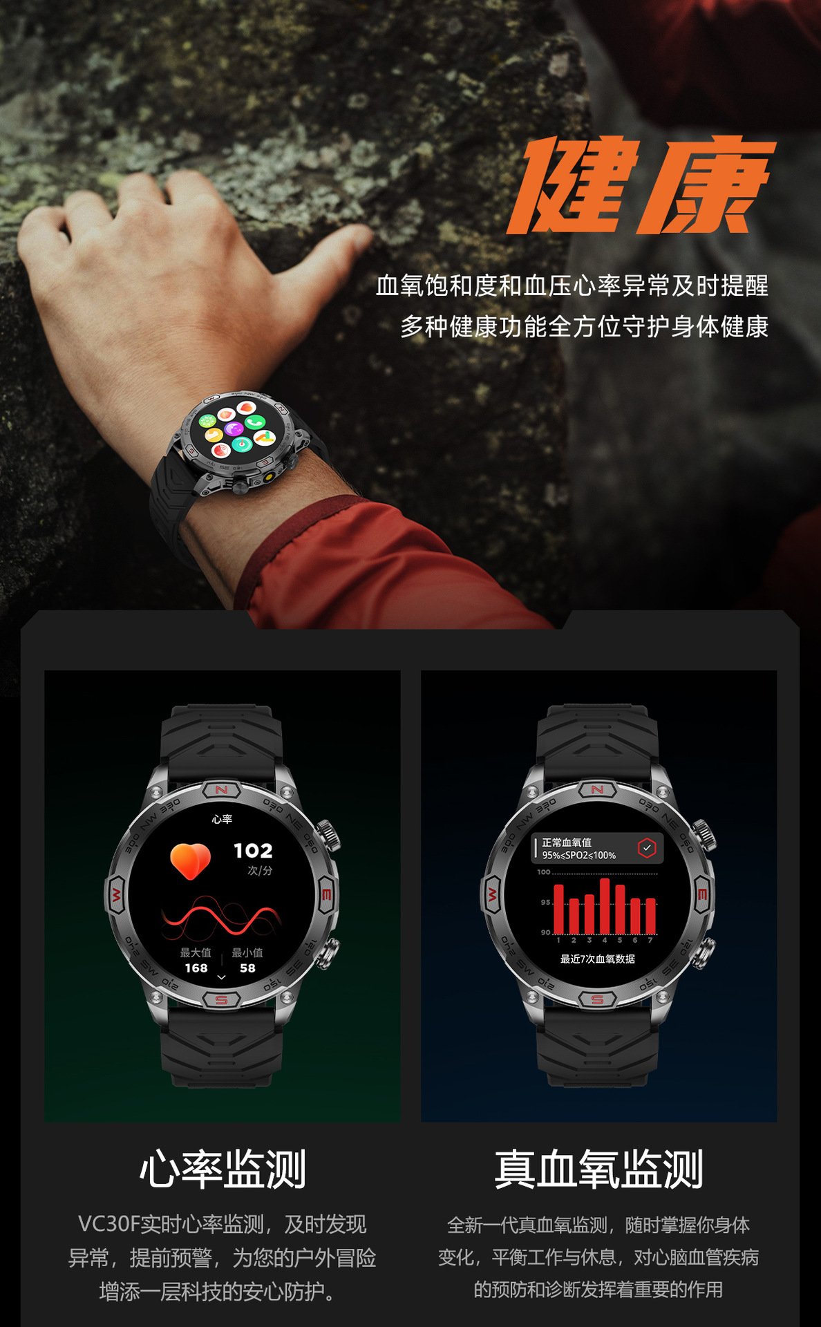 4- 气压计,指南针,3套UI风格,70+表盘可选,支持DIY,113+种运动模式, 21国多语言,100个本地通讯录等;