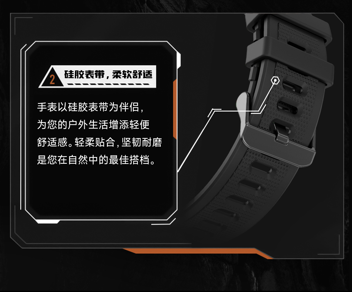 2- 窄边款铝合金磨砂电镀表壳,22mm可更换表带(默认硅胶表带, 钢带皮带可选);