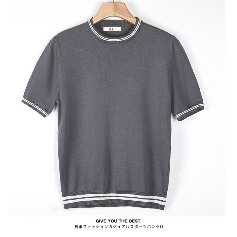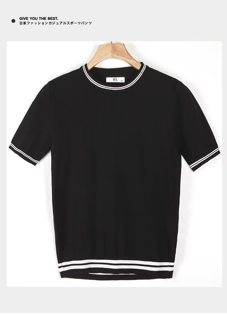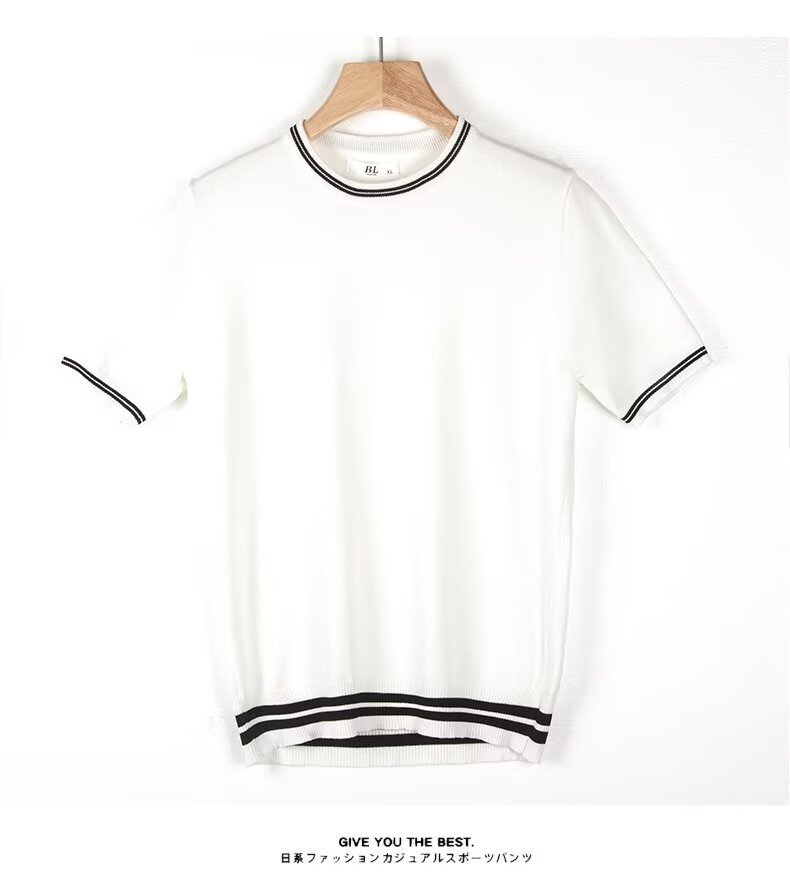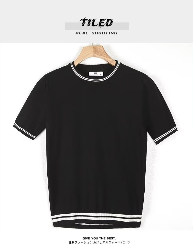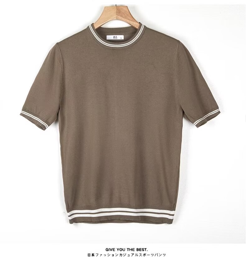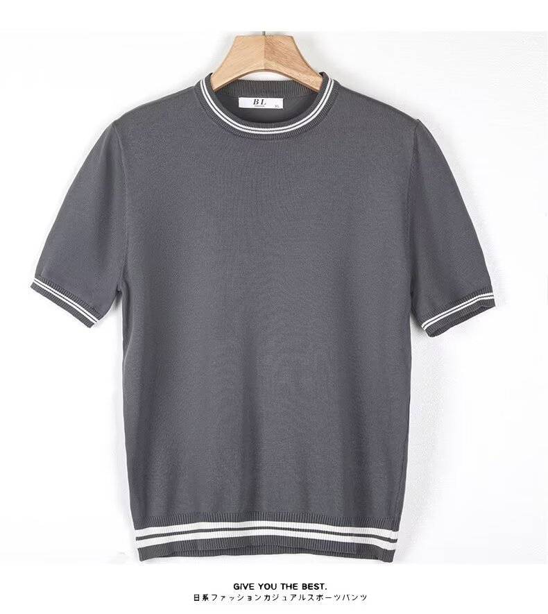 여름 반팔 티셔츠 남성용 트렌디 브랜드 얇은 니트 베이스 셔츠 한국 스타일 트렌디 탑 간단한 올 매치 티셔츠스토어 가기