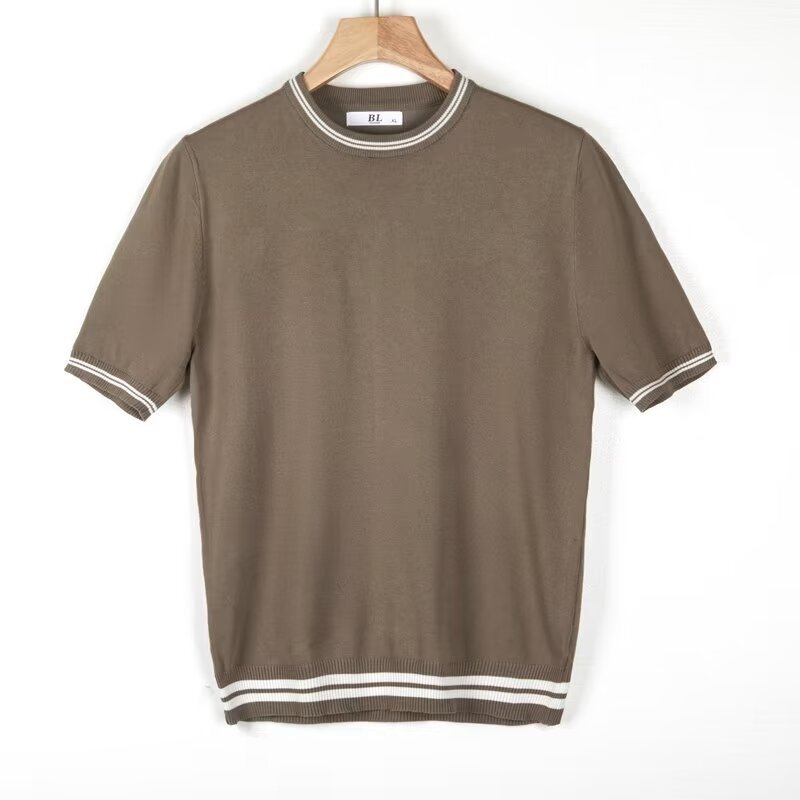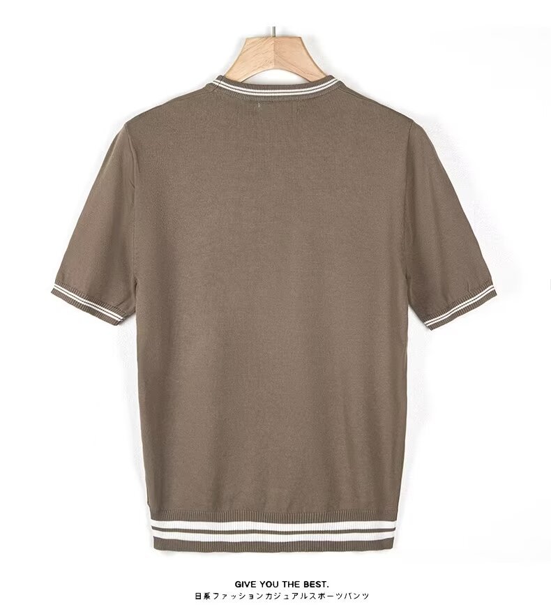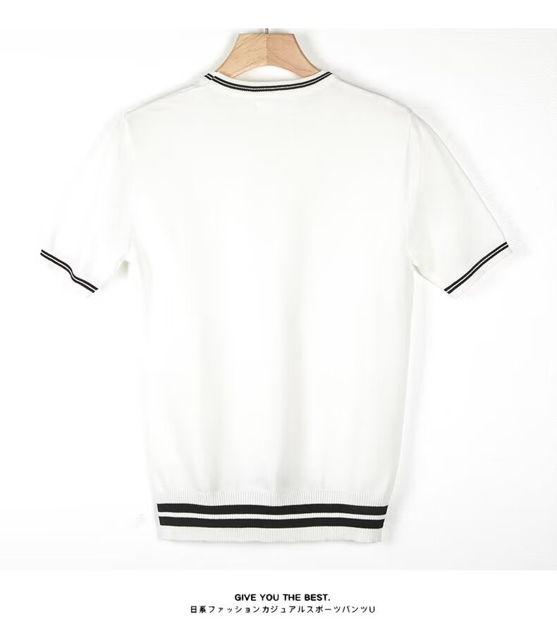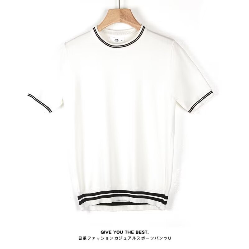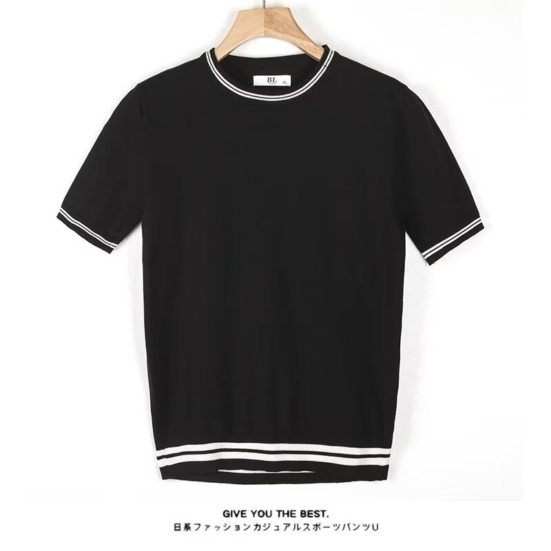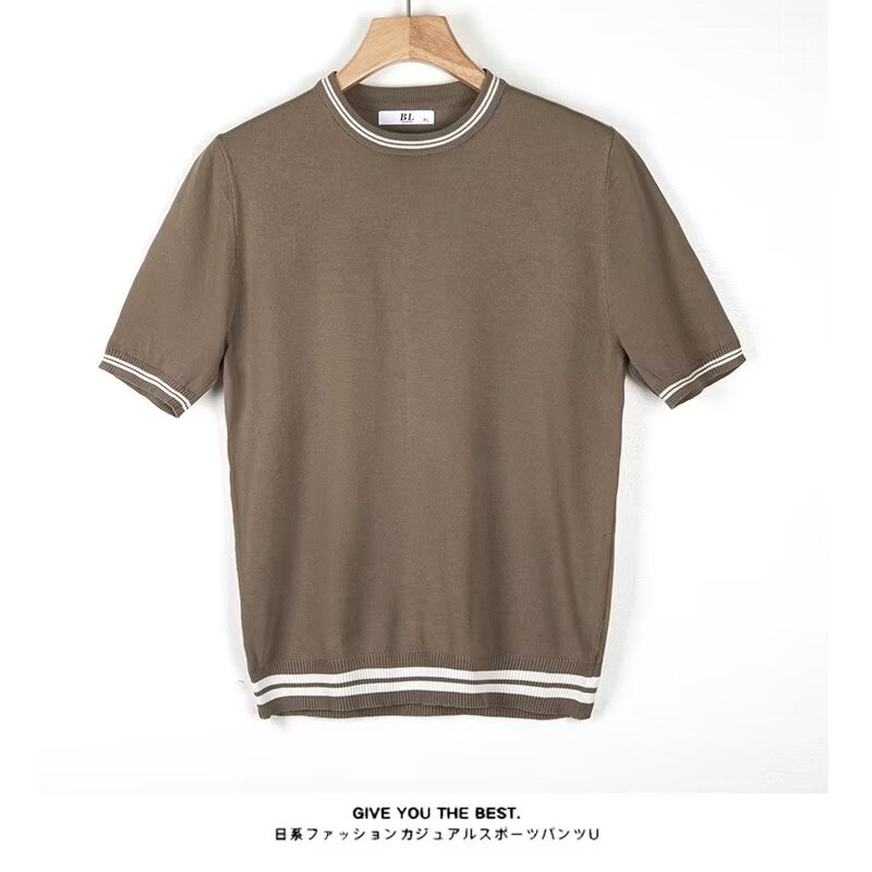 여름 반팔 티셔츠 남성용 트렌디 브랜드 얇은 니트 베이스 셔츠 한국 스타일 트렌디 탑 간단한 올 매치 티셔츠스토어 가기
