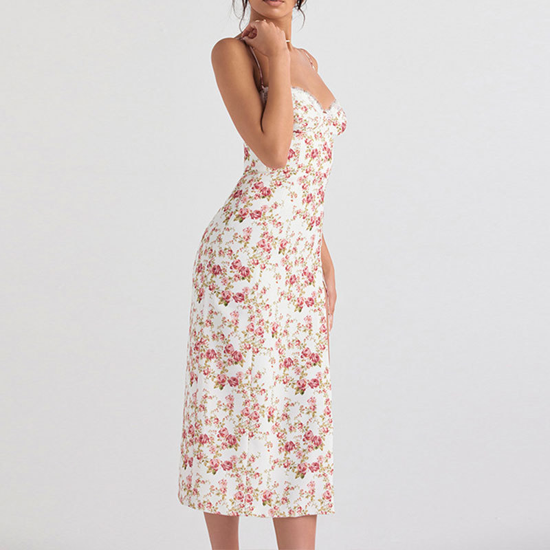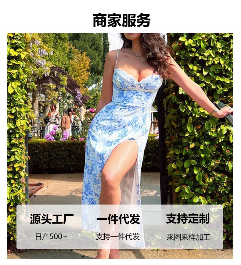 유럽 및 미국 해외직구 2025 봄 여성복 신상 아마존 패션 작은 꽃무늬 프린트 슬릿 슬립 원피스 여성용