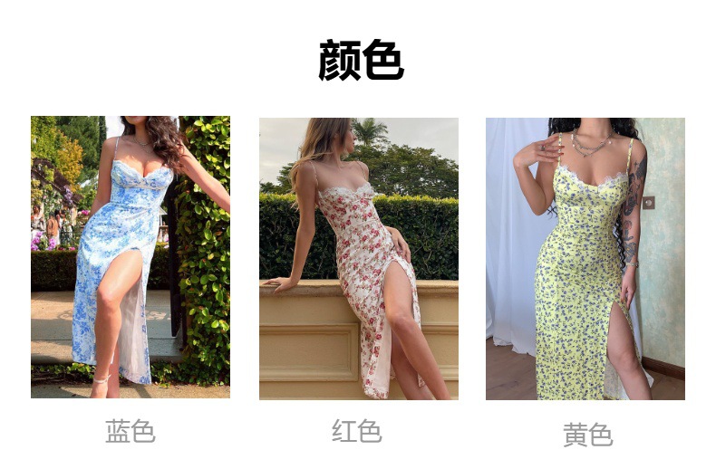 유럽 및 미국 해외직구 2025 봄 여성복 신상 아마존 패션 작은 꽃무늬 프린트 슬릿 슬립 원피스 여성용스토어 가기