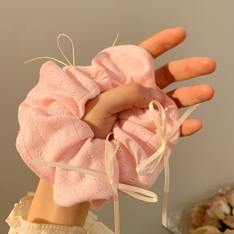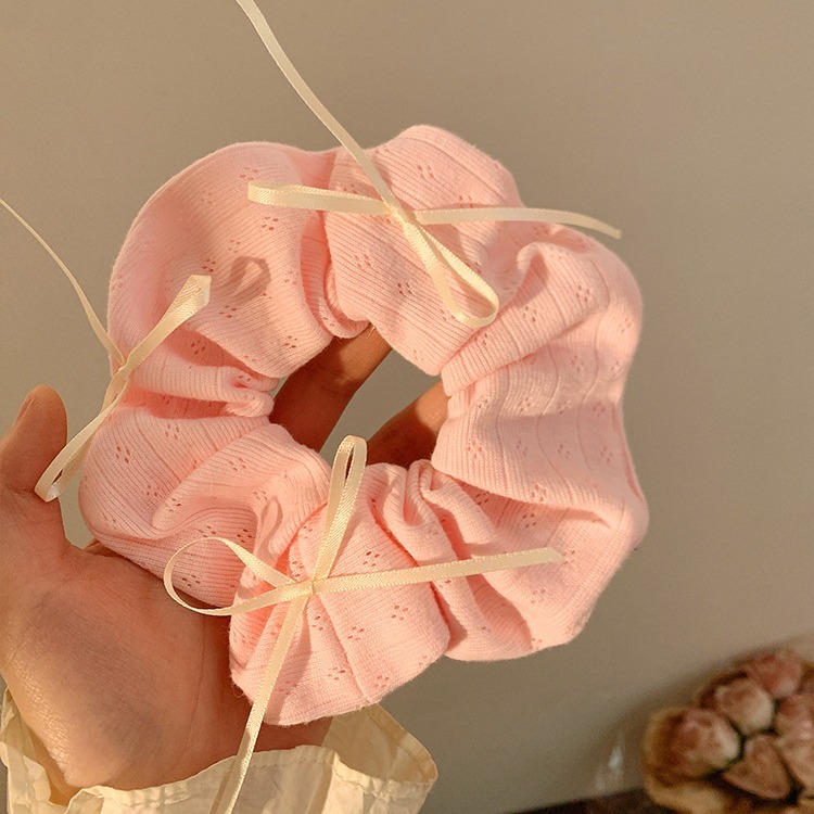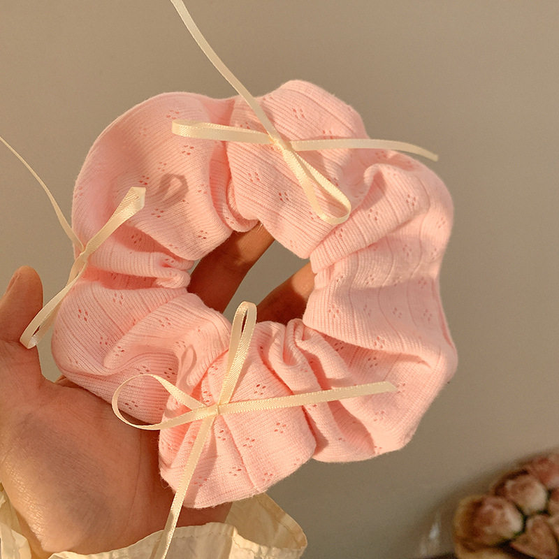 리본 머리끈 핑크색 머리끈 포니테일 머리끈 부드러운 분위기의 헤어 액세서리 머리에 손상을 주지 않음