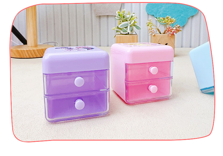 일본 만화 귀여운 서랍 미니 저장 상자 어린이 책상 더블 레이어 보석 주최자 상자 보석 작은 상자