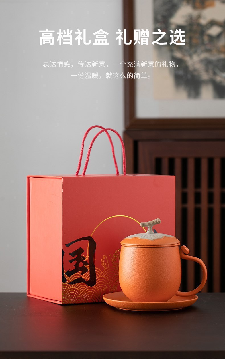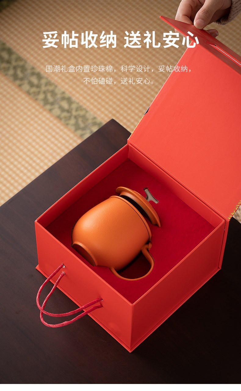 Guochao 워터 컵 감 Ruyi 오피스 컵 선물 상자 티 필터 플레이트 홈 오피스 활동 선물 로고스토어 가기