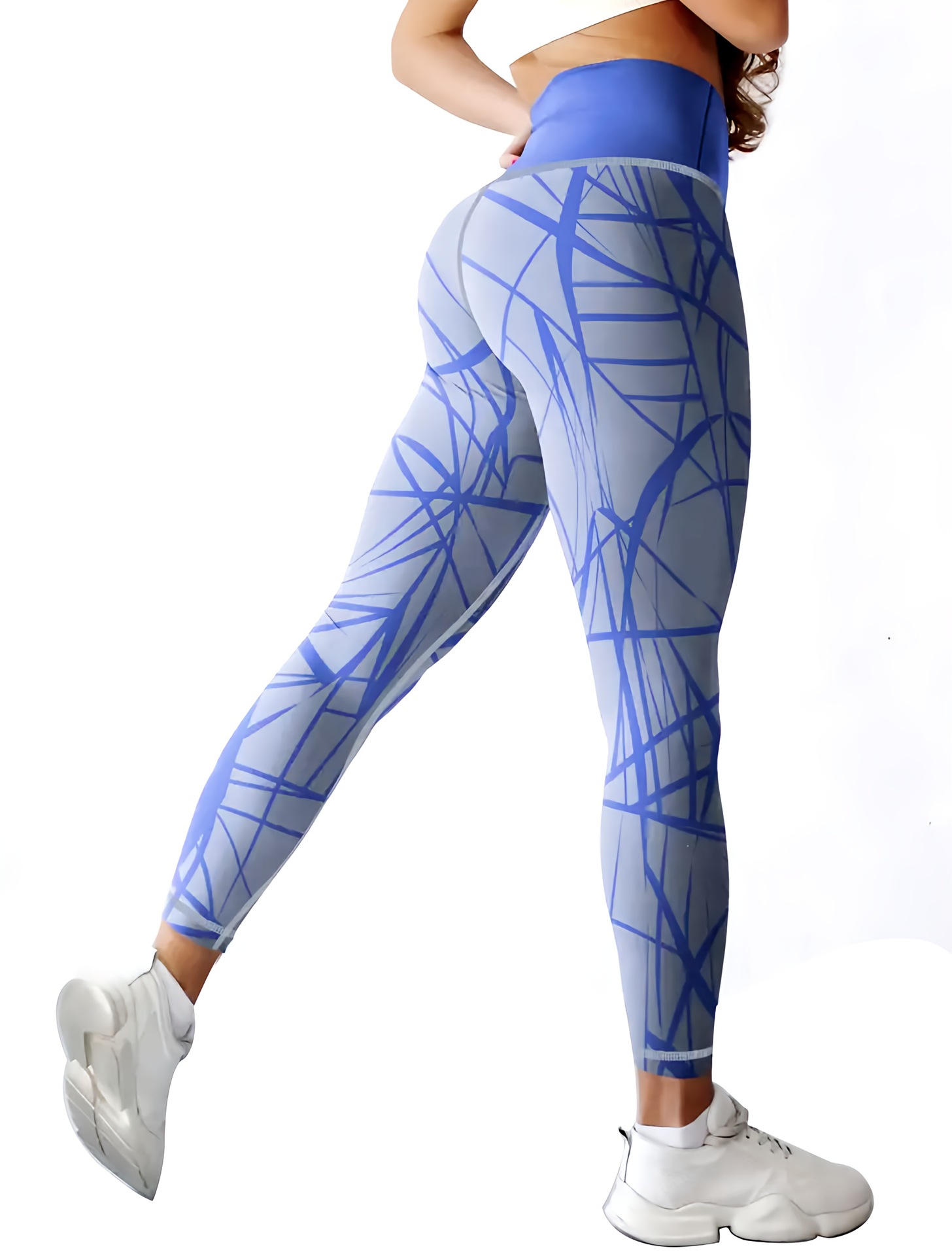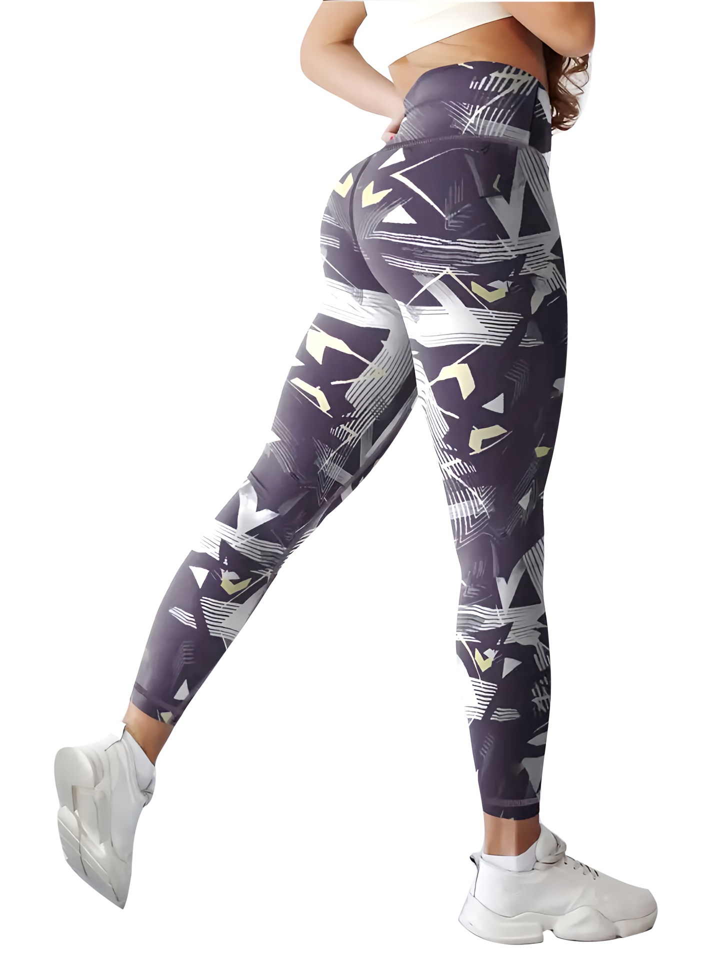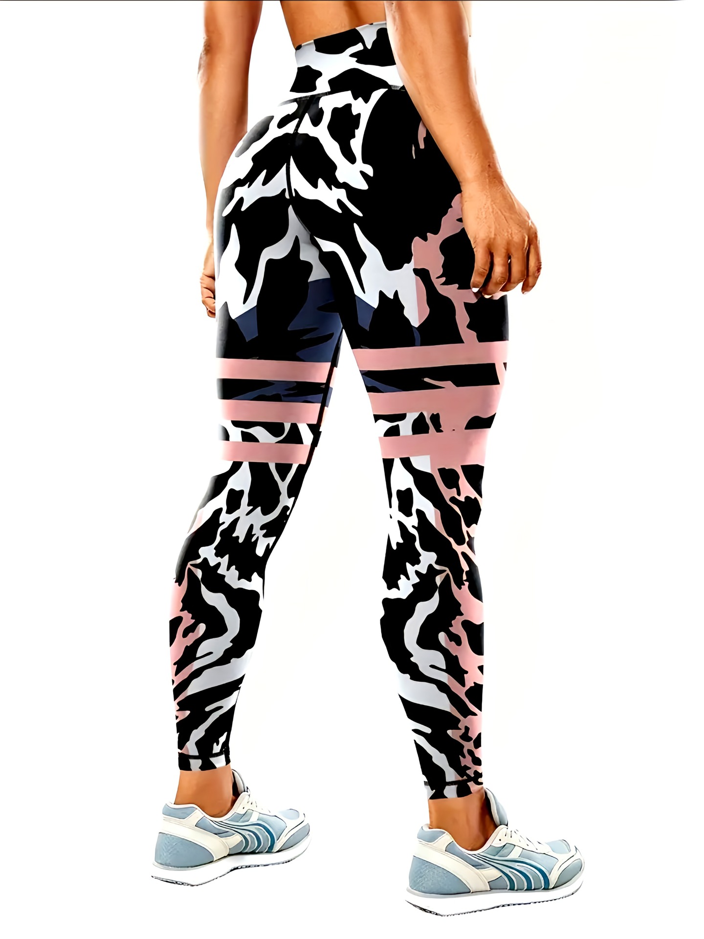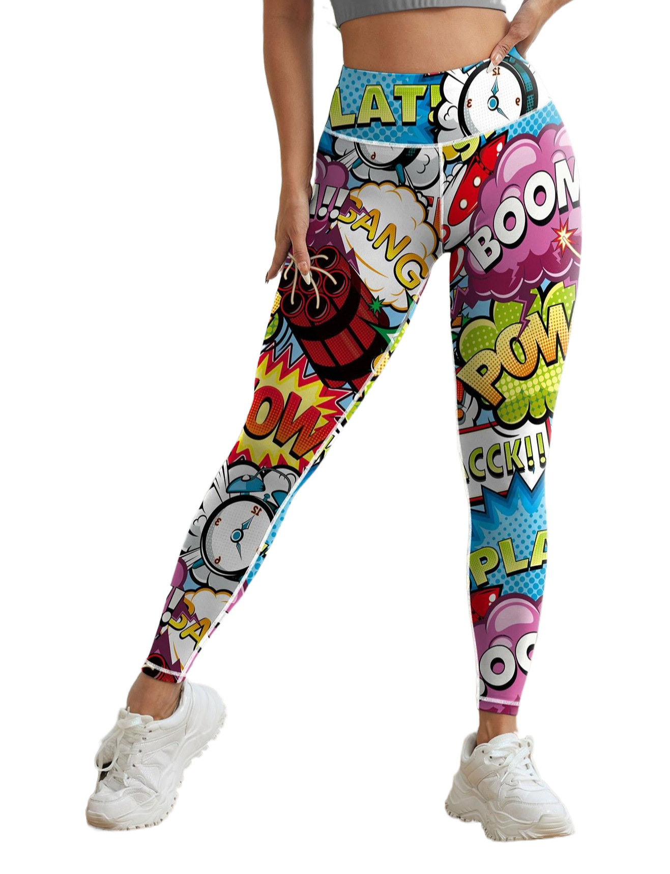 국경 간 새로운 유럽과 미국의 원활한 높은 허리 알몸 인쇄 요가 바지 여성용 엉덩이 레깅스 빠른 건조 스포츠 요가 세트