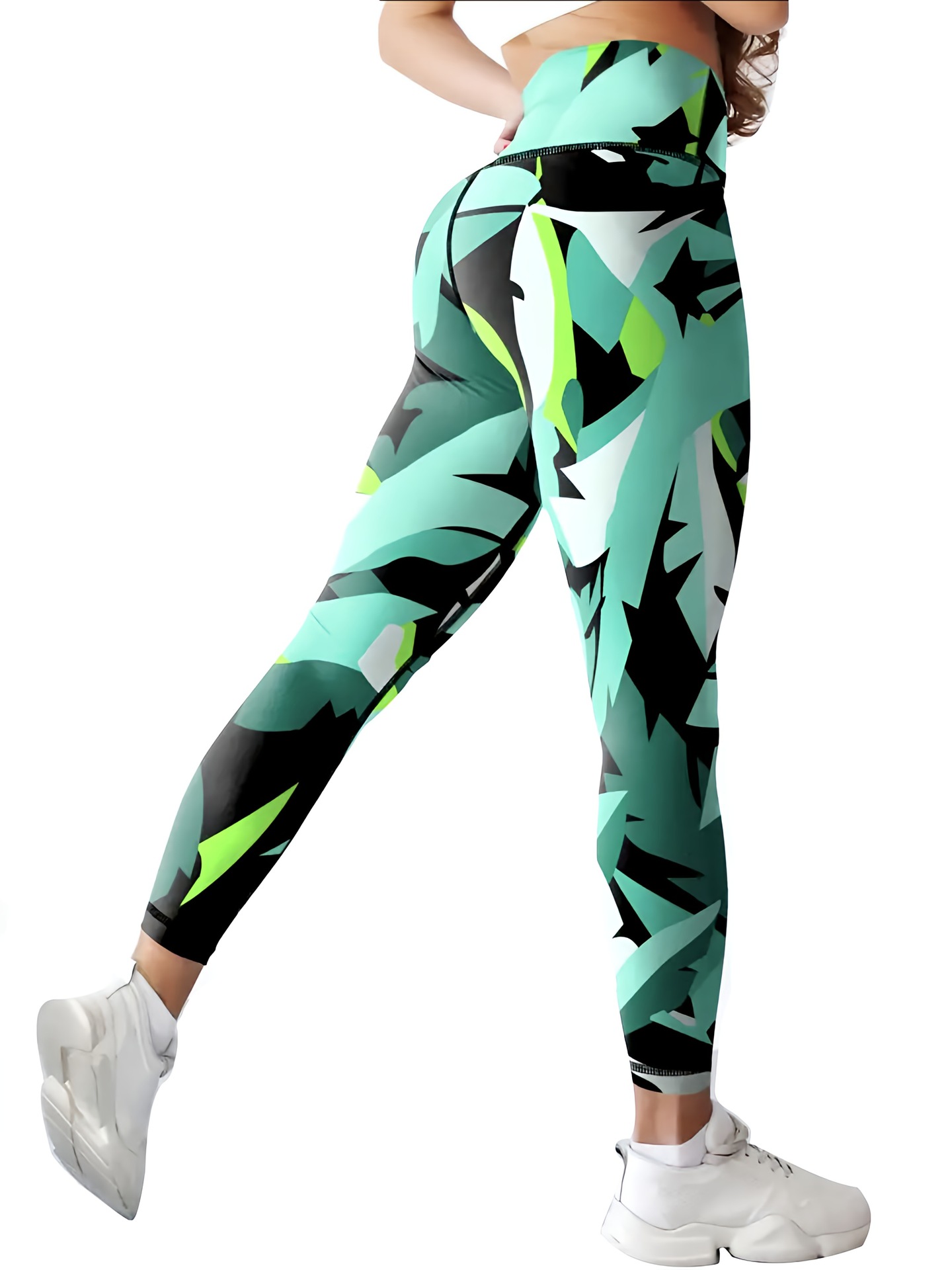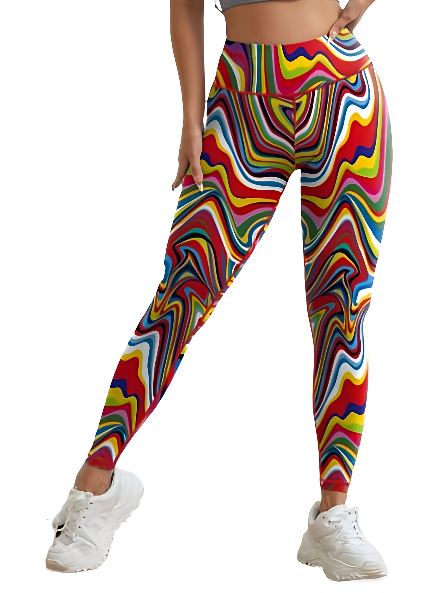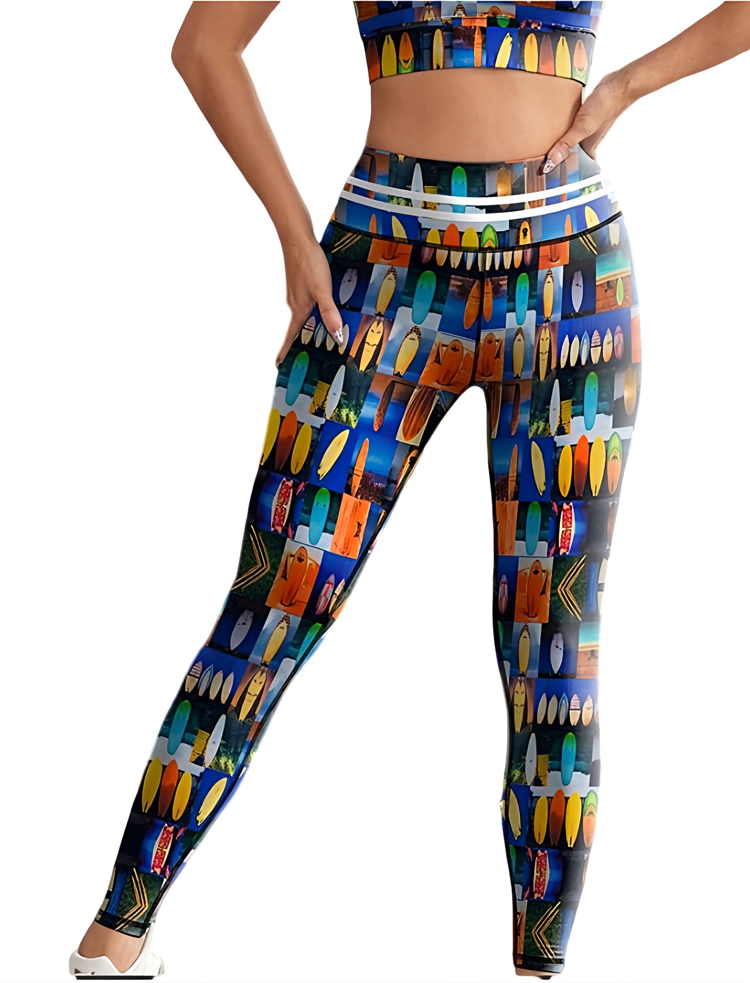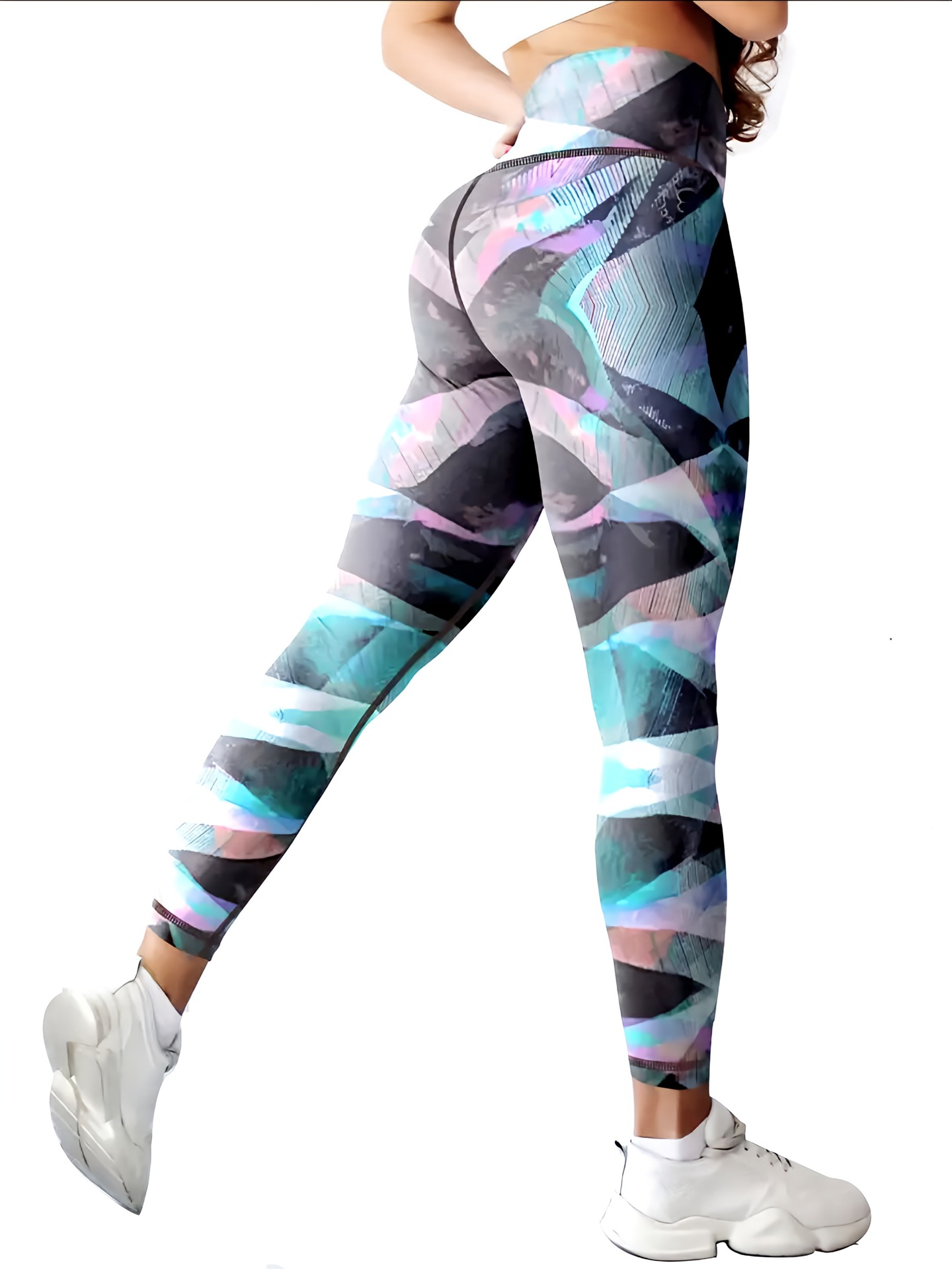 국경 간 새로운 유럽과 미국의 원활한 높은 허리 알몸 인쇄 요가 바지 여성용 엉덩이 레깅스 빠른 건조 스포츠 요가 세트