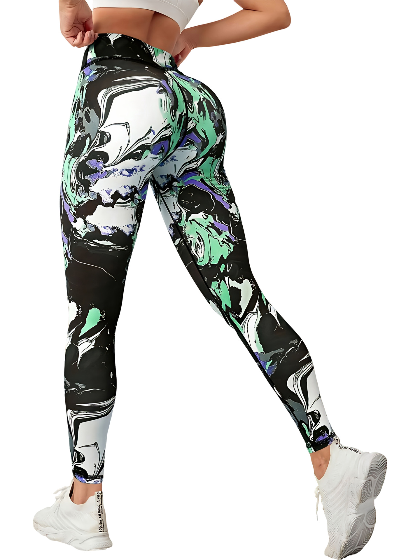 국경 간 새로운 유럽과 미국의 원활한 높은 허리 알몸 인쇄 요가 바지 여성용 엉덩이 레깅스 빠른 건조 스포츠 요가 세트스토어 가기
