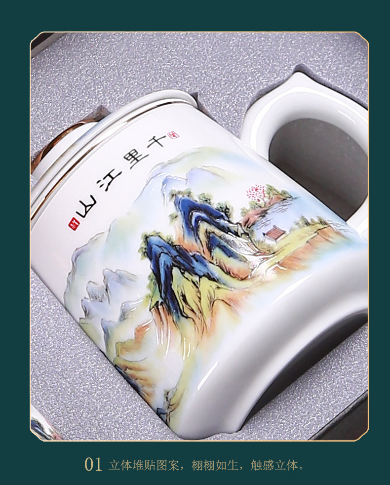 원광석 세라믹 점토 재료 수천 마일 강산 금 사무실 컵 차 선물 상자 물 컵 사무실도 선물 로고를 사용합니다.스토어 가기