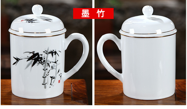 Jingdezhen 세라믹 티 컵 뚜껑 개인 컵 남자 사무실 물 컵 화이트 도자기 티 컵스토어 가기