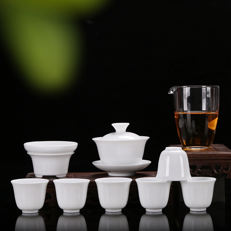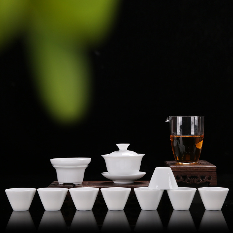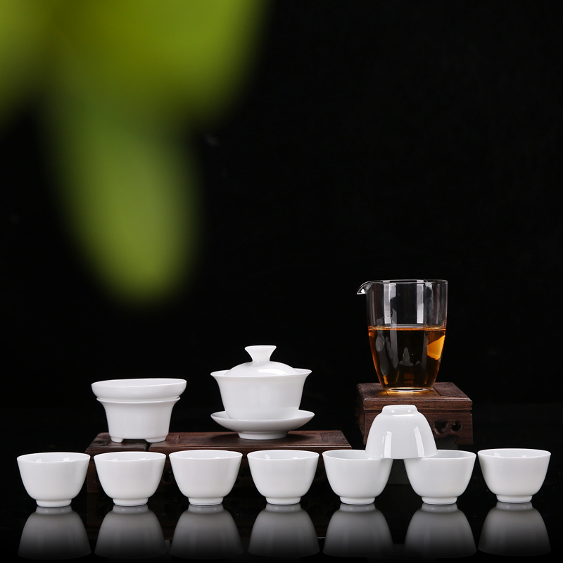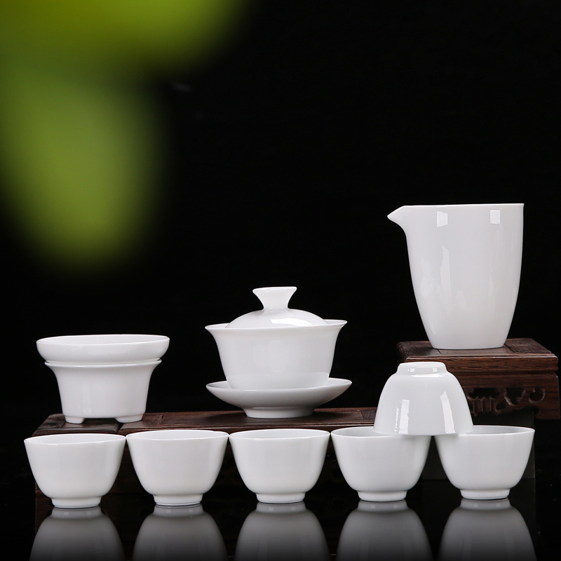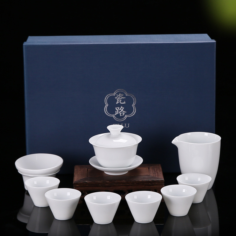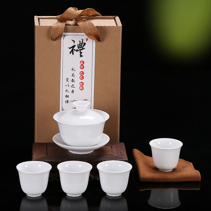 선물 상자 세라믹 쿵푸 차 세트 홈 오피스 데화 화이트 도자기 커버 그릇 티 컵 조각 로고 세트스토어 가기