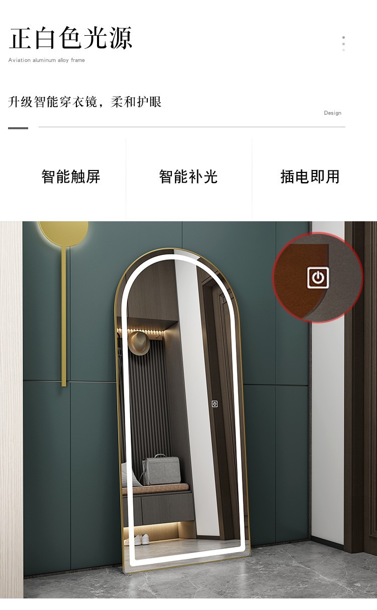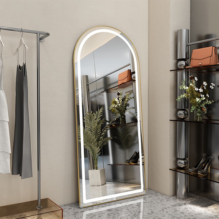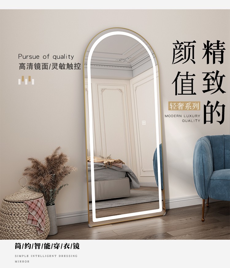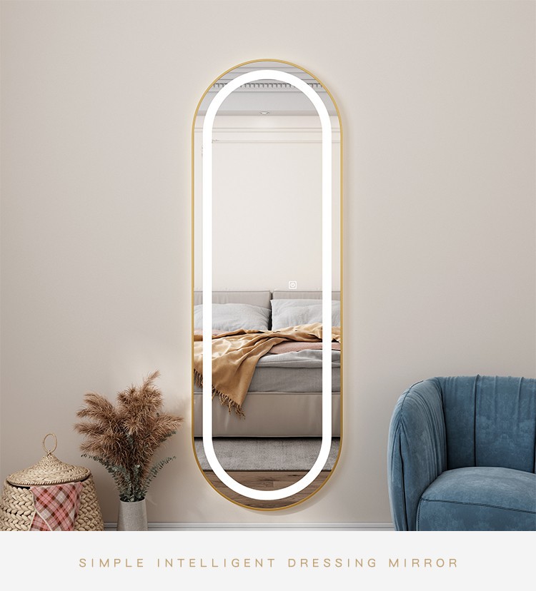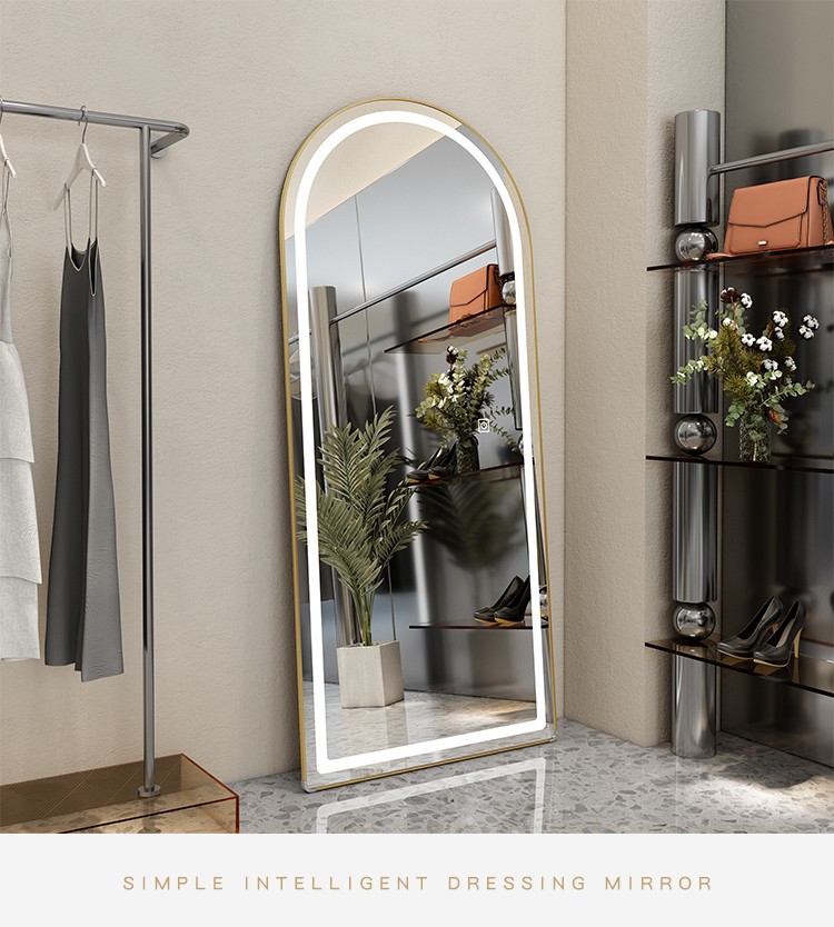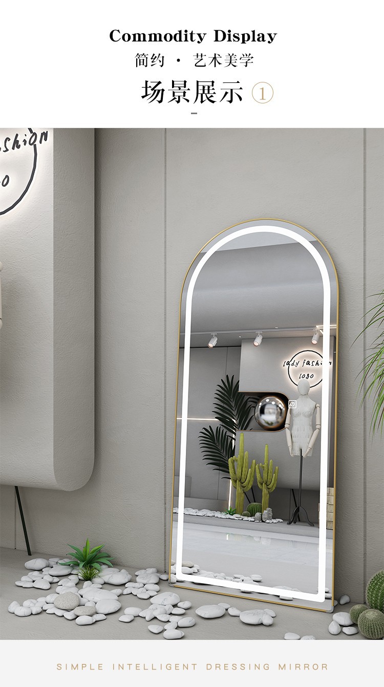 조명이 있는 플로어 스탠딩 거울, 스마트 LED 조명 거울, 의류 매장용 슬리밍 전신 거울, 셀카 뷰티 거울, 모던하고 심플한 디자인