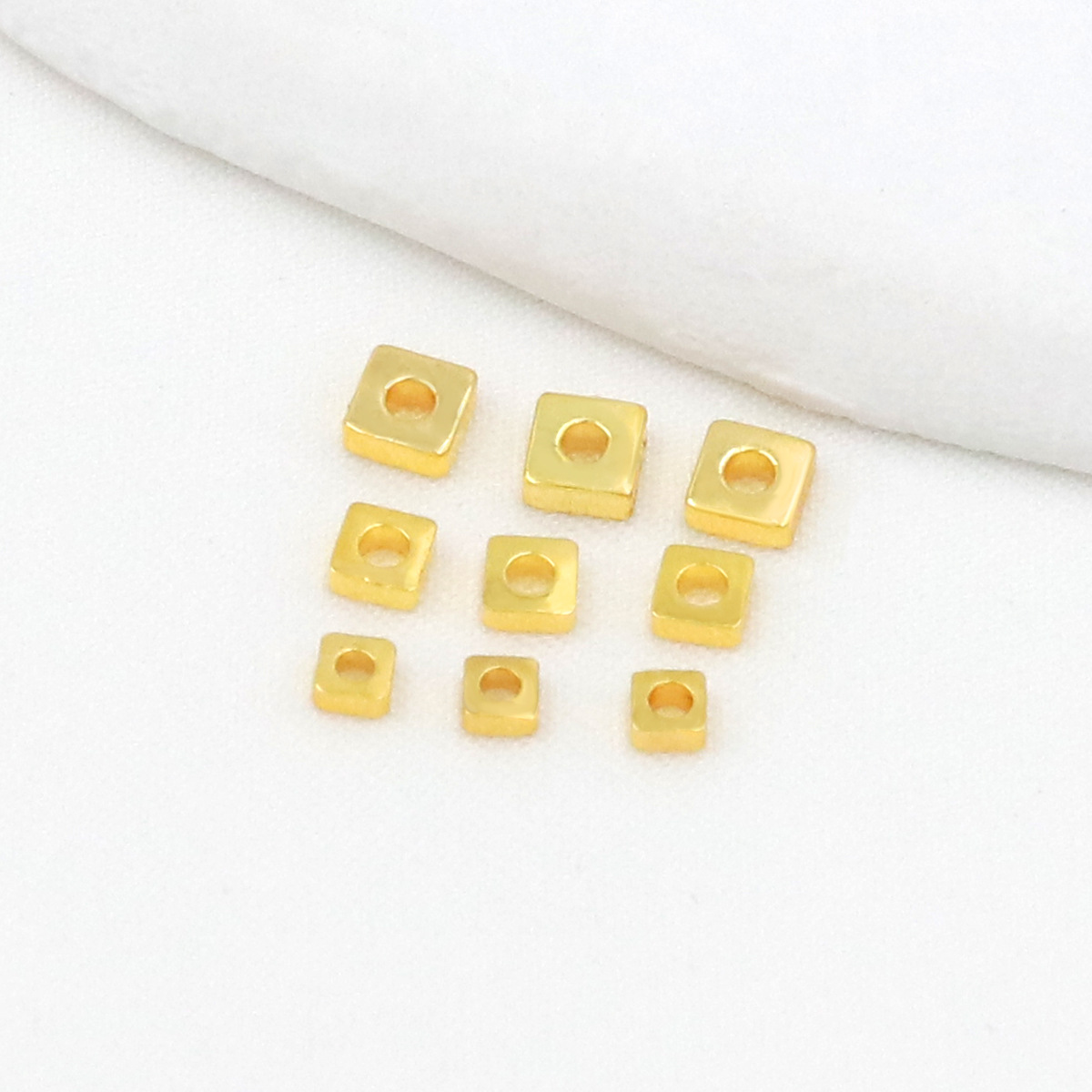 순수 구리 도금 18K 트루 골드 작은 깨진 골드 구슬 작은 스퀘어 스페이서 DIY 팔찌 목걸이 비즈 로프 액세서리 D136